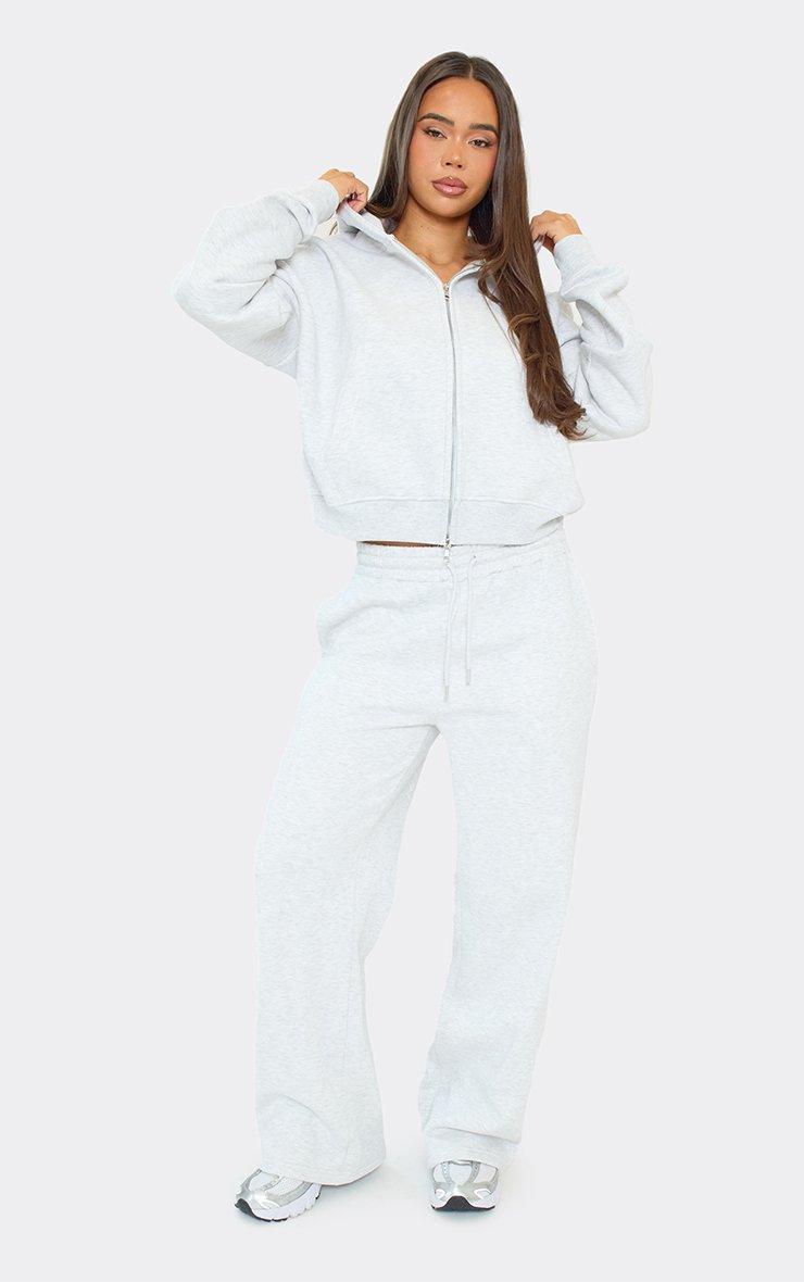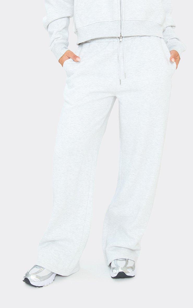 Mid Rise Elasticated Waist Wide Leg Joggers In Light Grey Marl