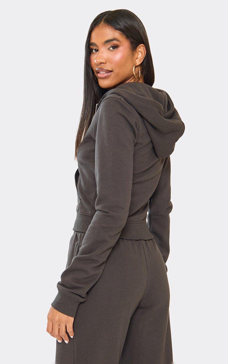 Long Sleeve Zip Up Cropped Hoodie In Chocolate Brown Rib