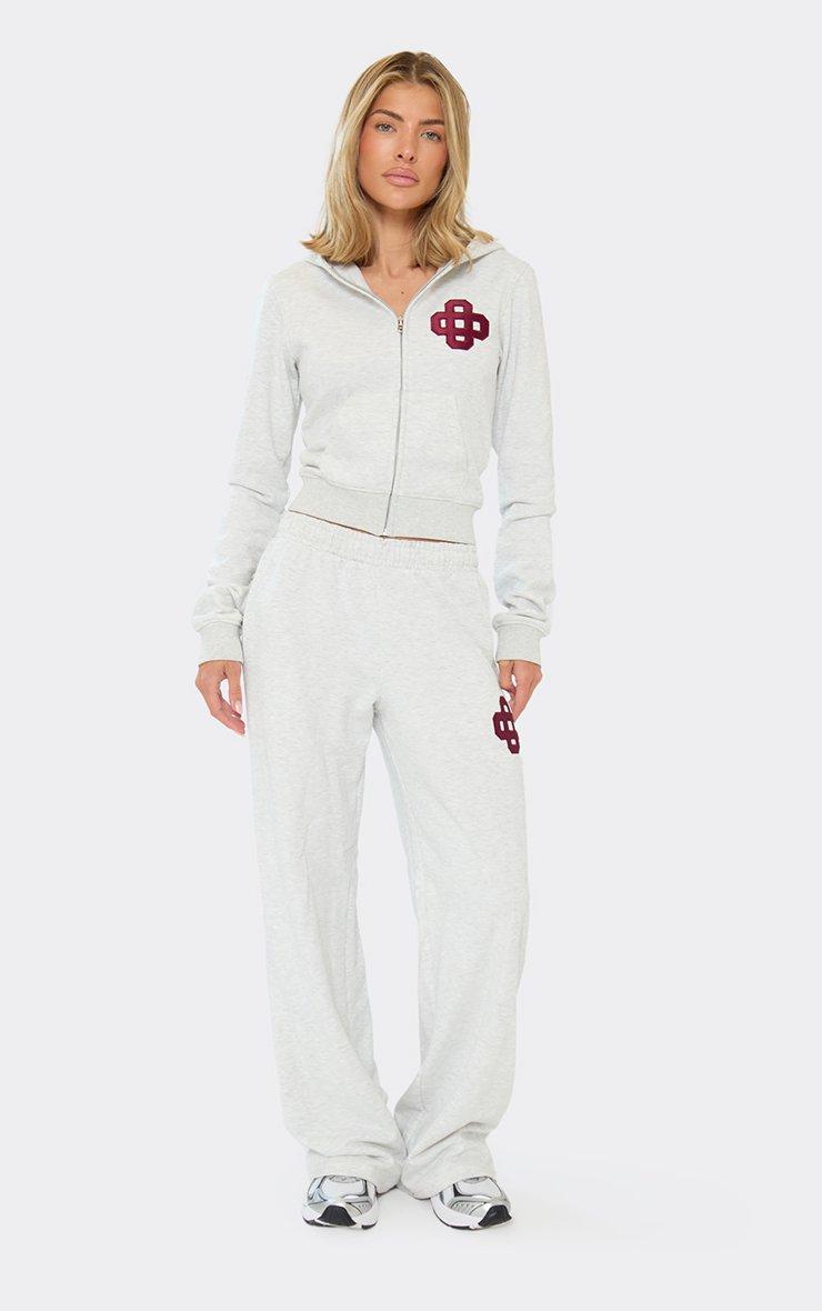 Low Waist Wide Leg Joggers In Light Grey Marl