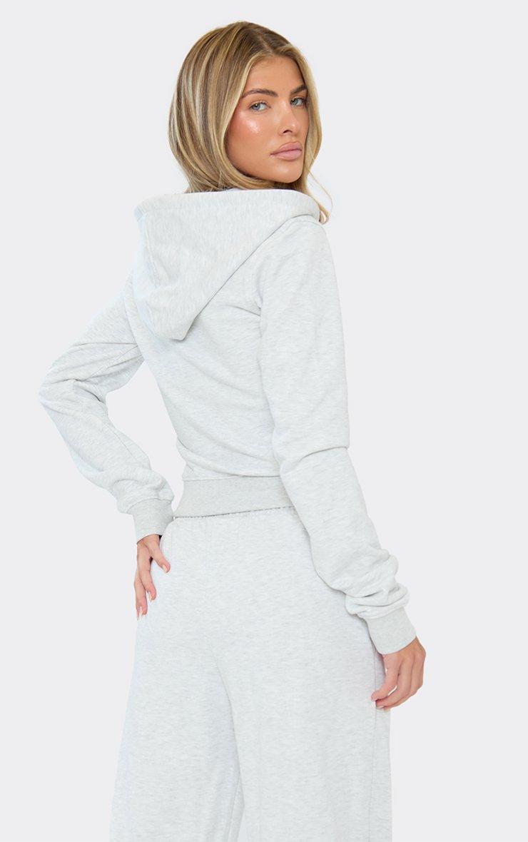 Double Zip Up Boxy Hoodie In Light Grey Marl