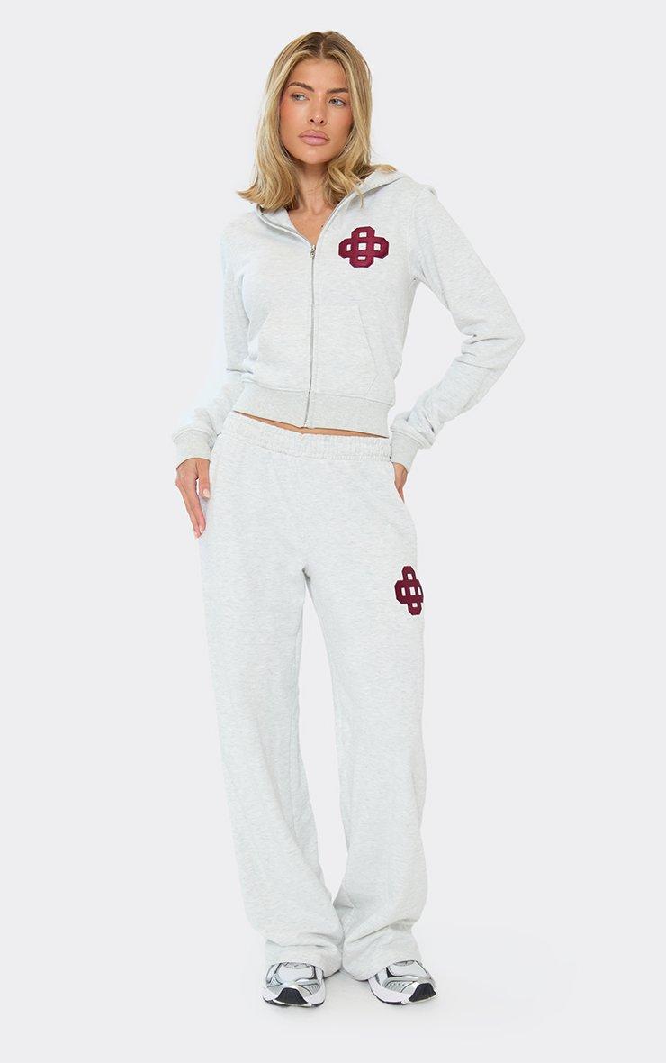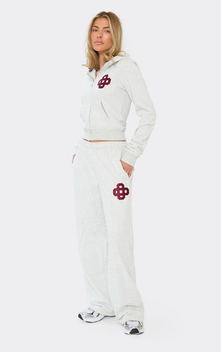 Mid Rise Embroidered Swirl Logo Wide Leg Joggers In Light Grey Marl