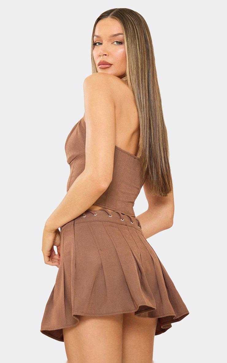 Halterneck Lace Up Detail Top In Chocolate Brown