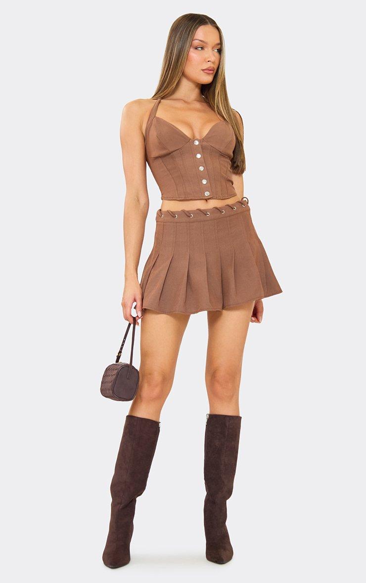 Sweetheart Neckline Tailored Crop Top In Chocolate Brown