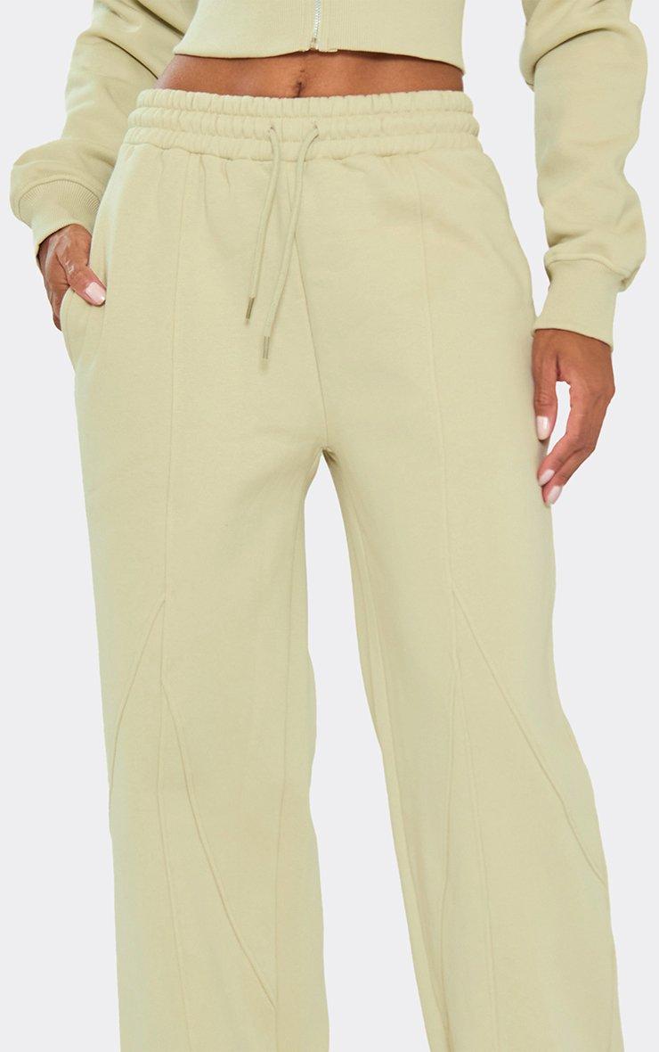 Mid Rise Graphic Detail Wide Leg Joggers In Olive Green