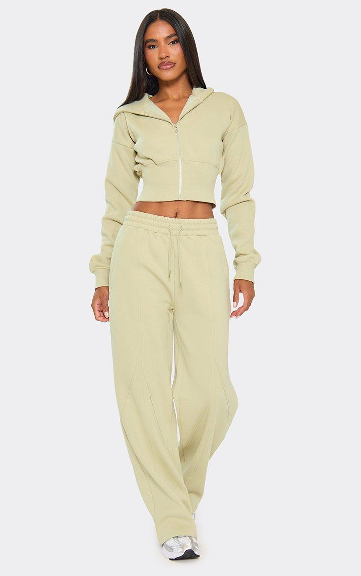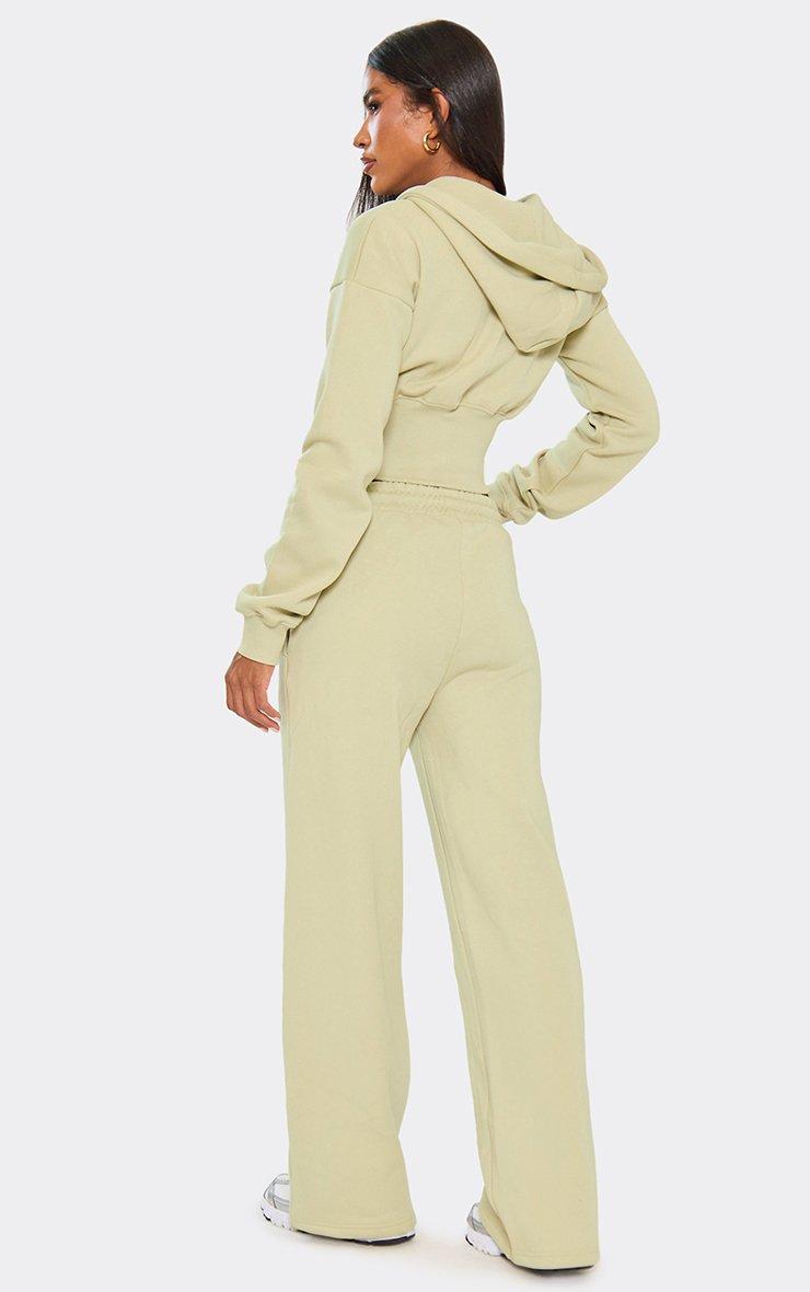 Elasticated Waist Wide Leg Joggers In Sage Green