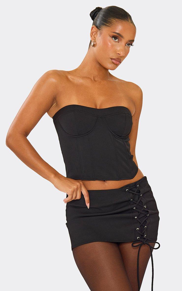 Bandeau Underwired Corset Crop Top In Black