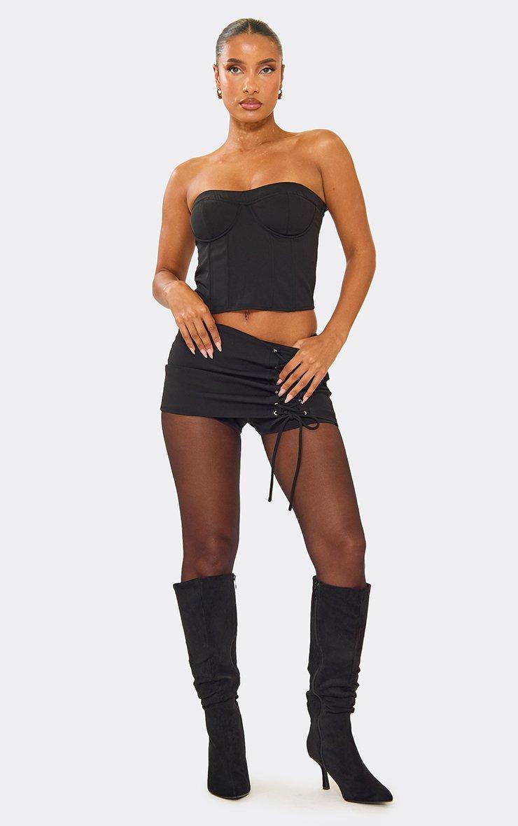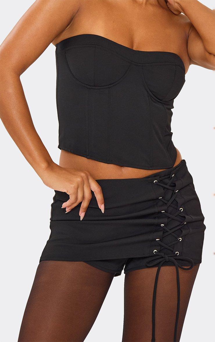 Mid Waist Tie Front Drape Maxi Skirt In Black Lace