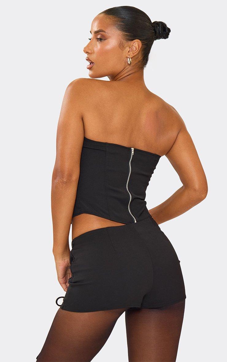 Shoulder Pad Button Up Fitted Top In Black Ribbed
