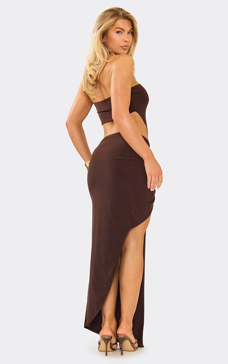 Bandeau Cut Out Knot Detail Maxi Dress In Chocolate Brown