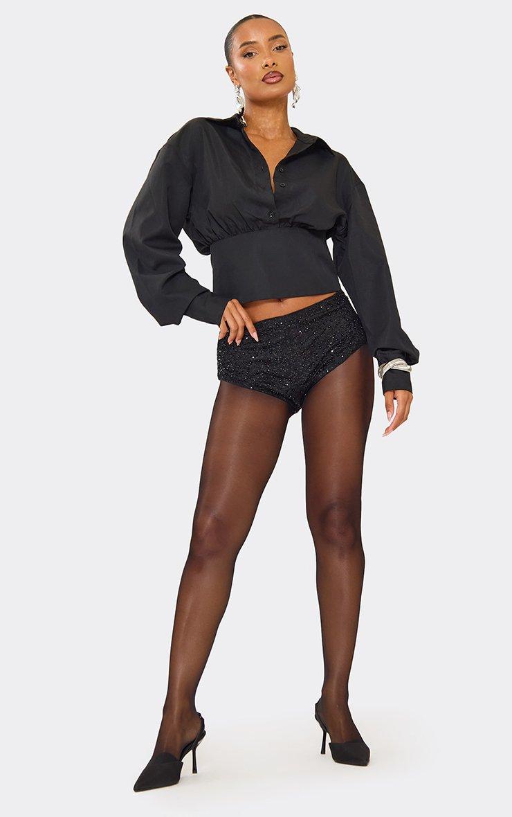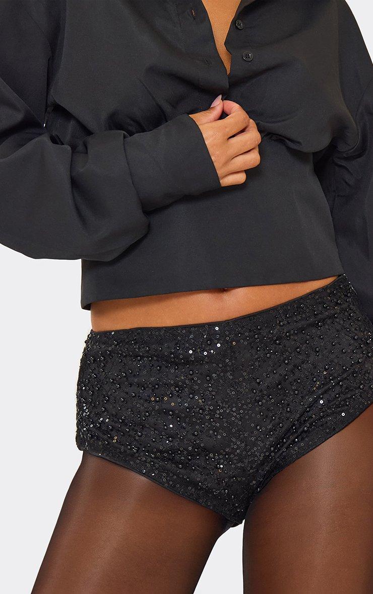 Low Rise Embellished Detail Knicker Shorts In Black Sequin