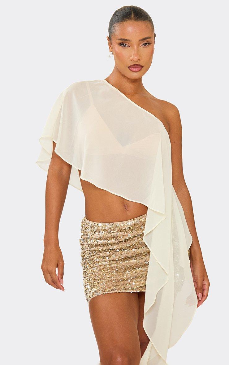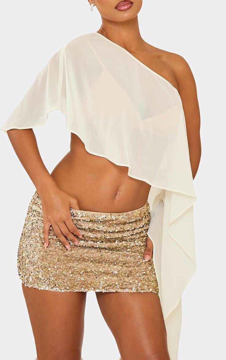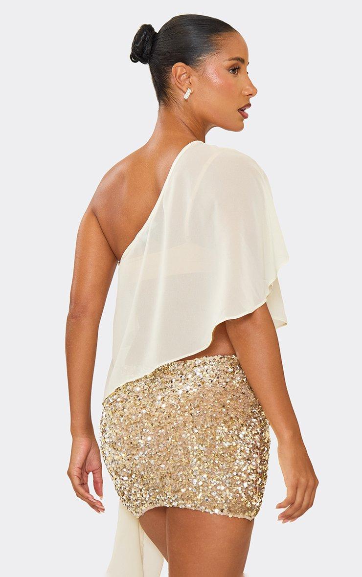 Mid Rise Tie Side Detail Micro Mini Skirt In Gold Sequin