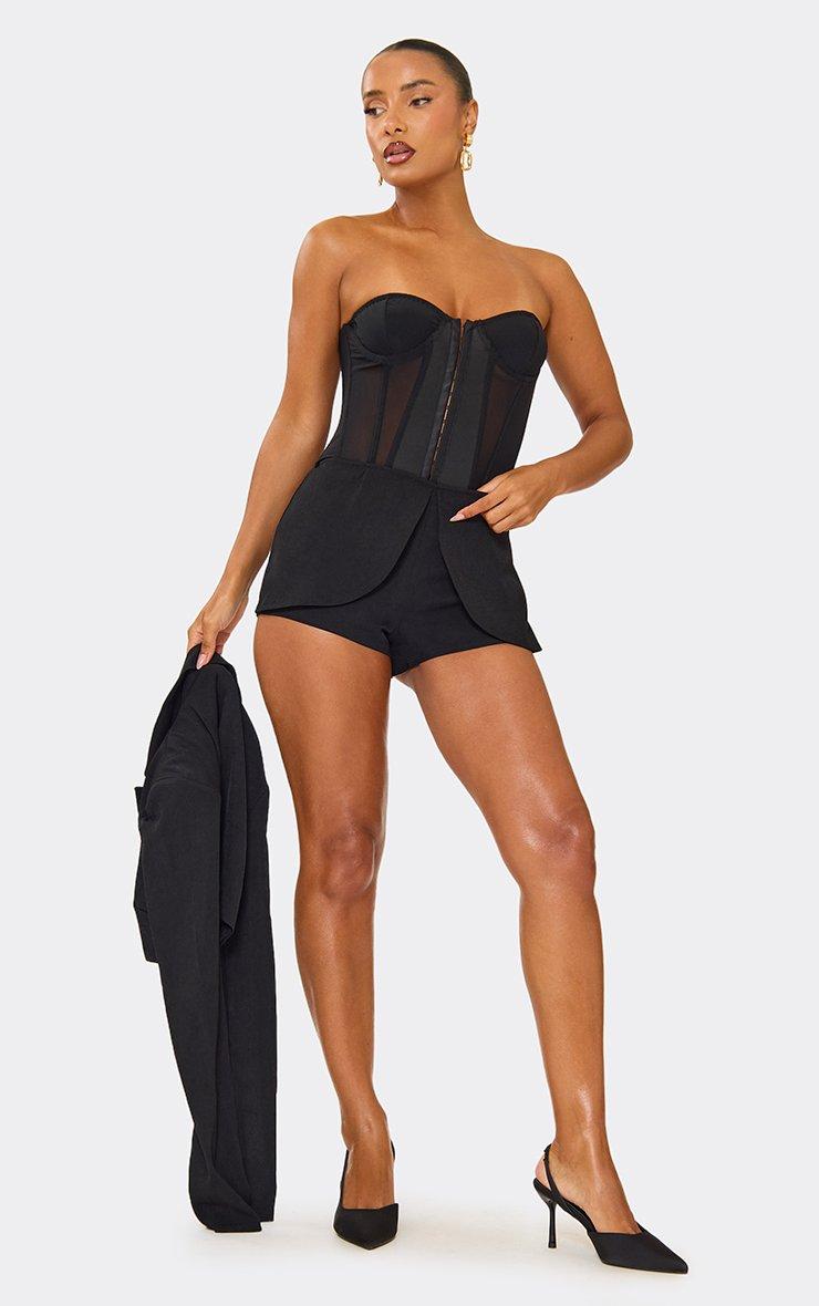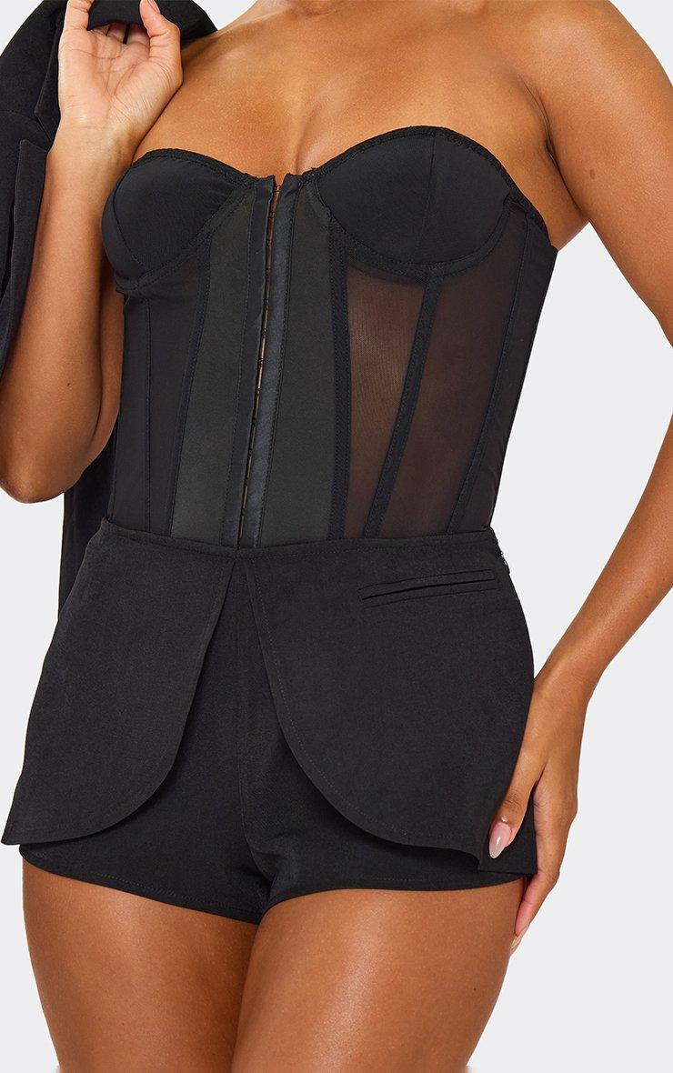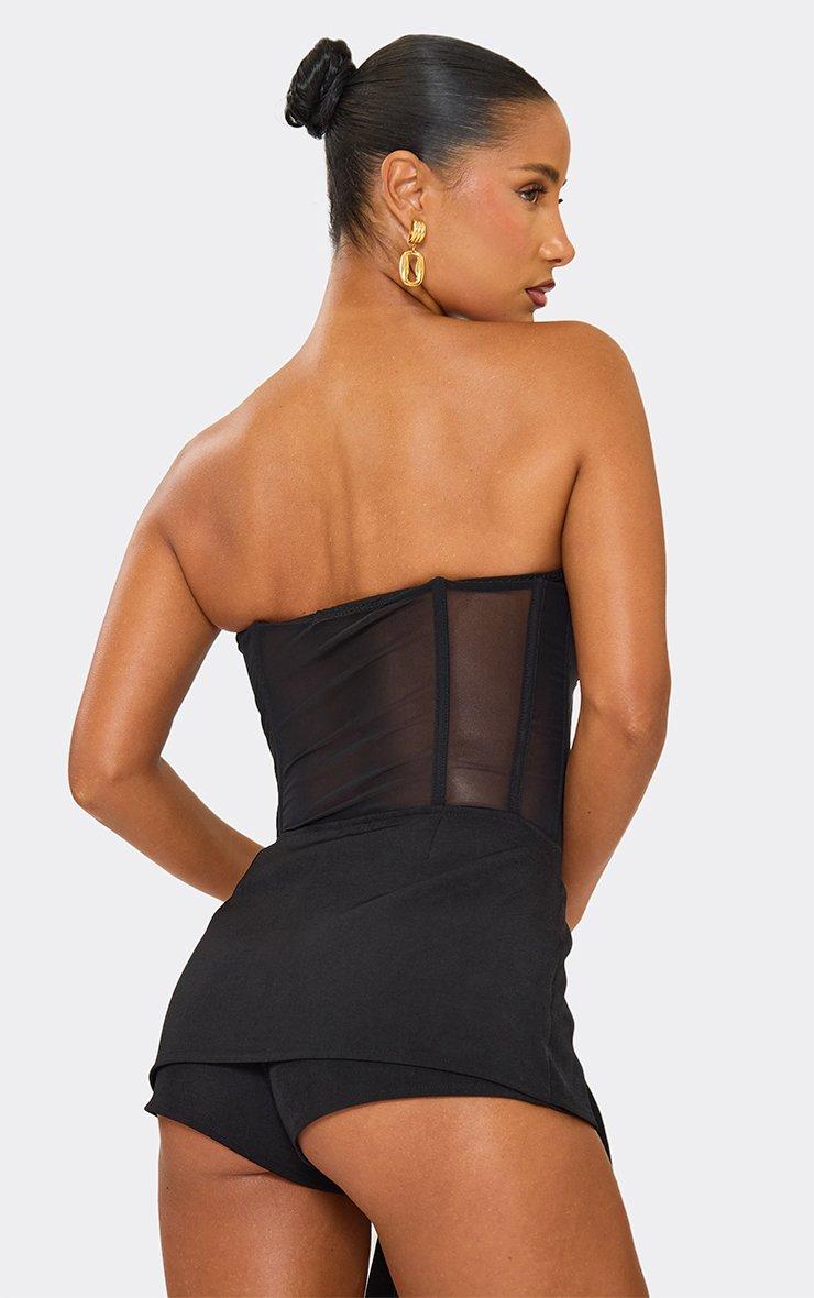 bandeau mesh panelled corset top in black