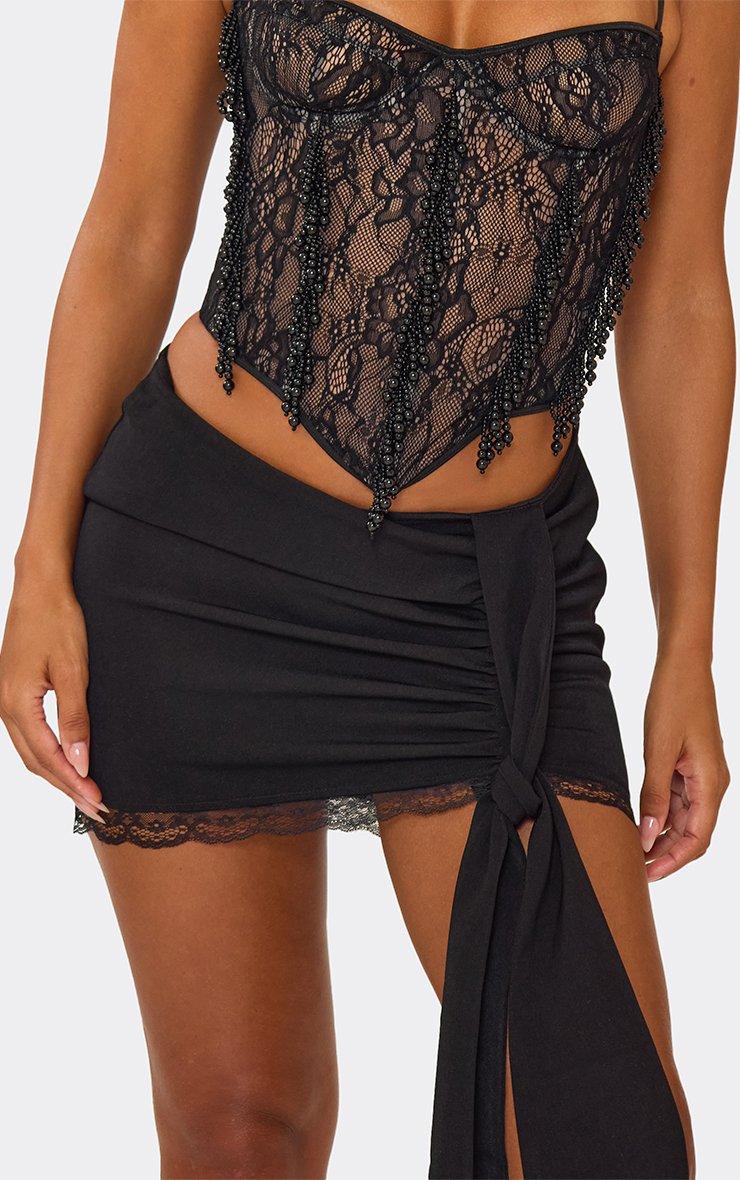 Low Rise Knot Drape Detail Mini Skirt In Black