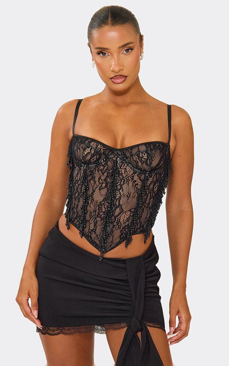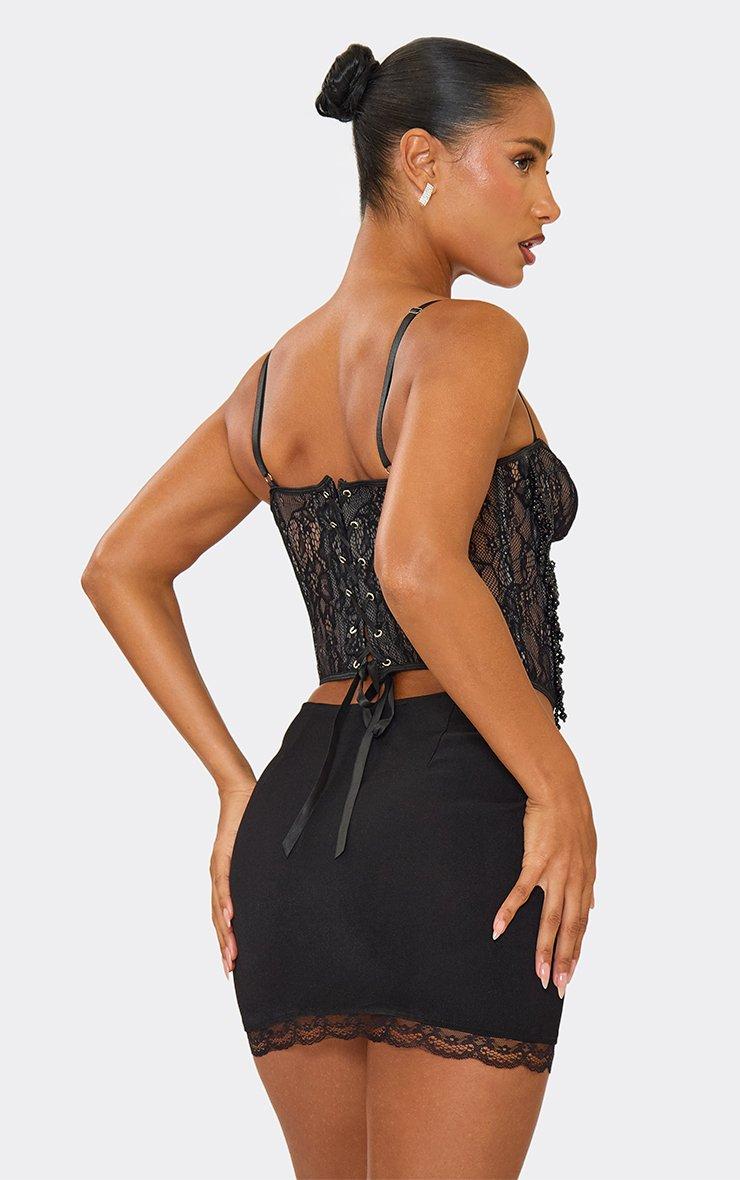 Mid Rise Tassel Detail Mini Skirt In Black Sequin