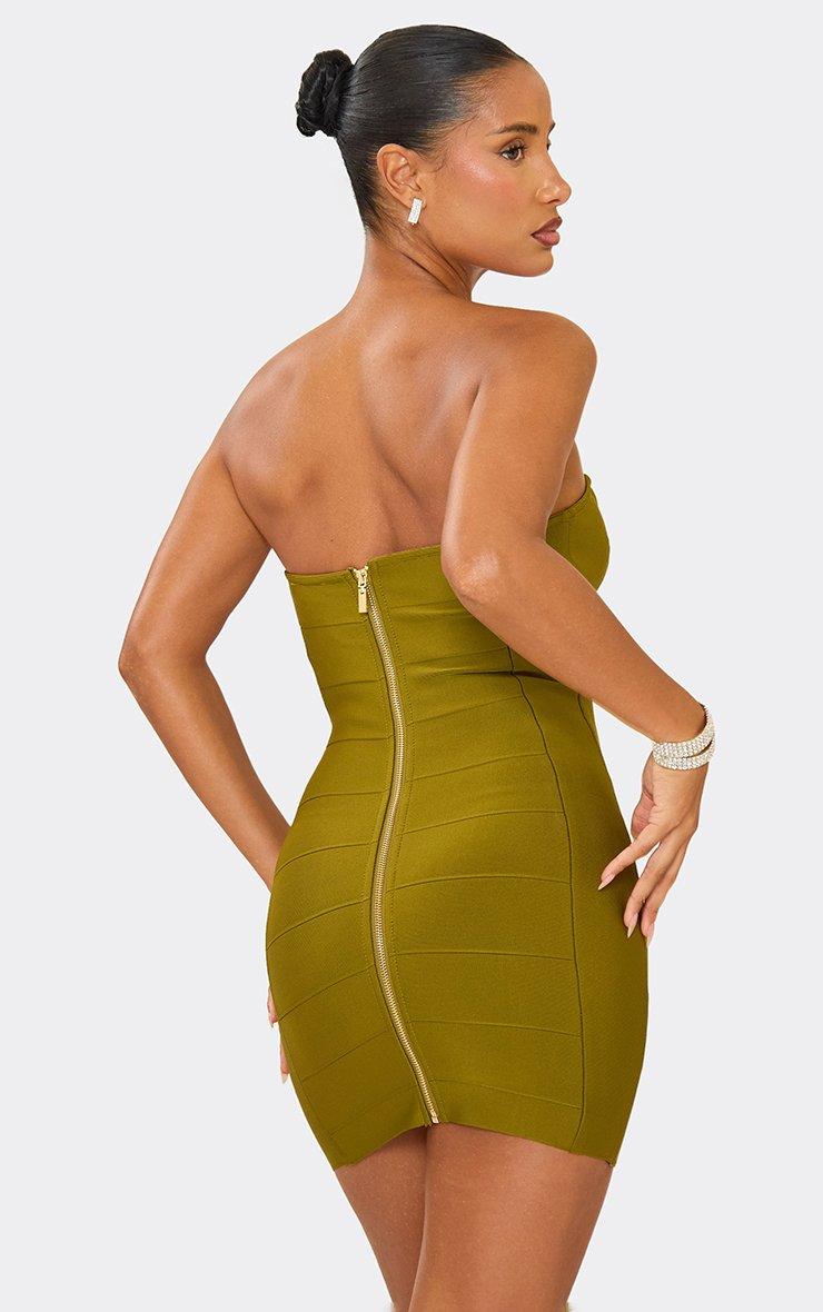 Off The Shoulder Drape Detail Corseted Mini Dress In Khaki Green