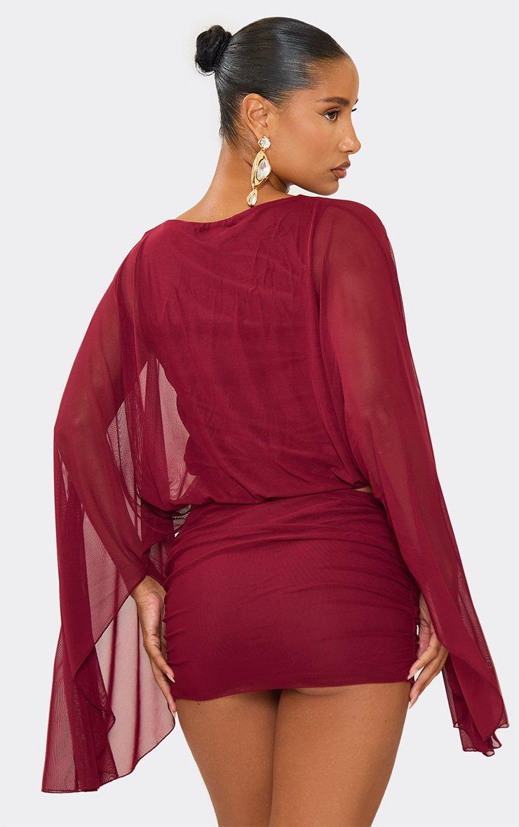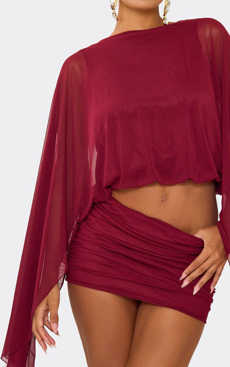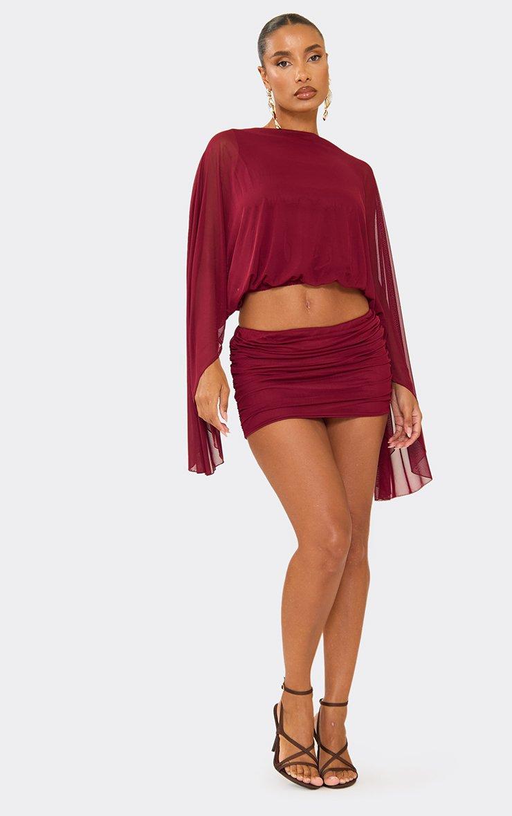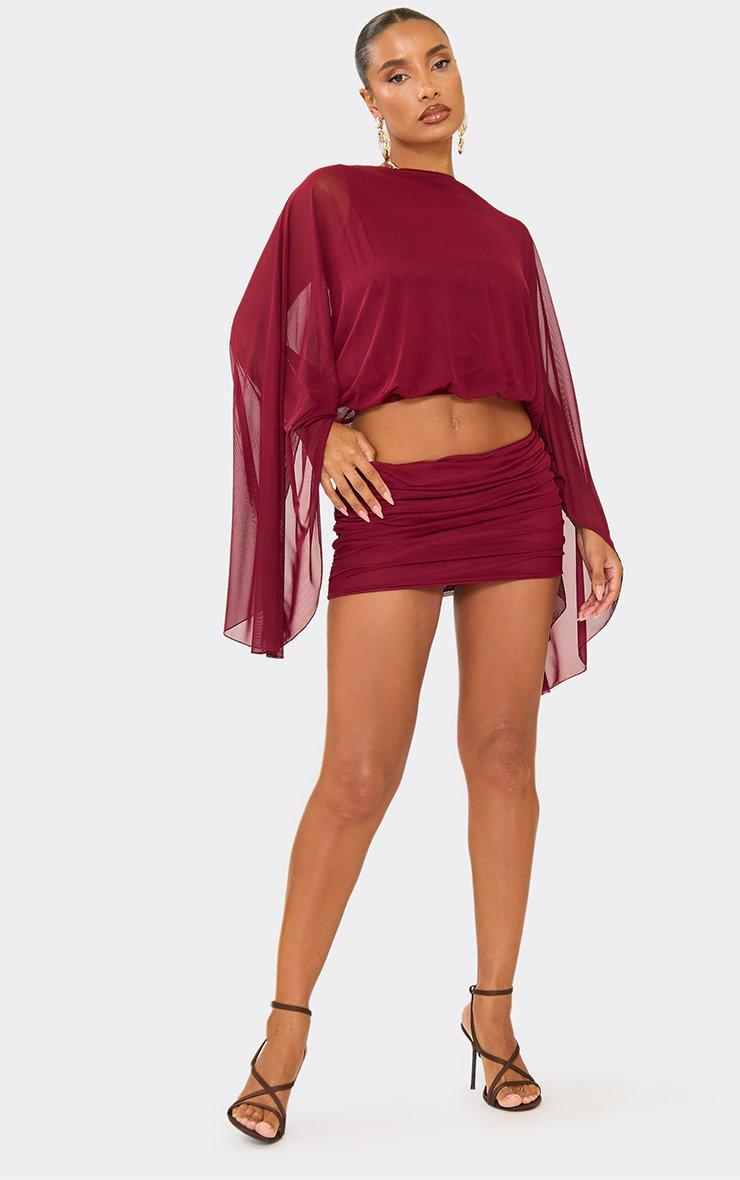 Low Waist Mini Skirt In Burgundy Mesh
