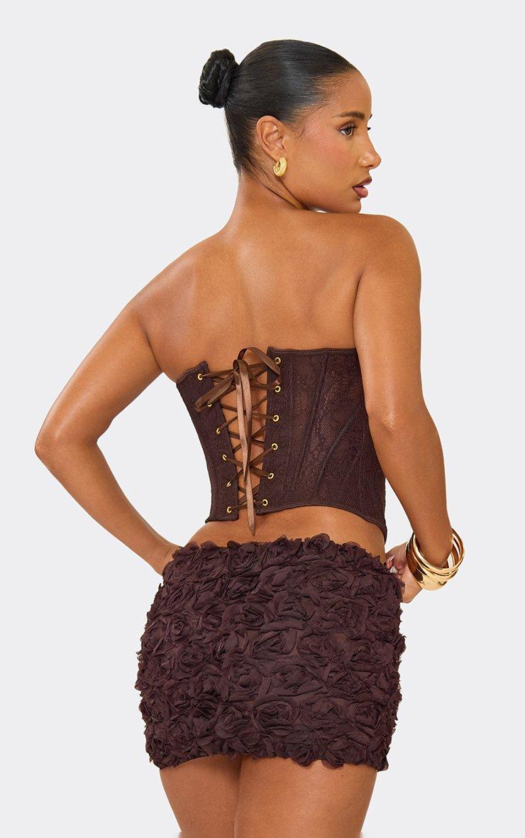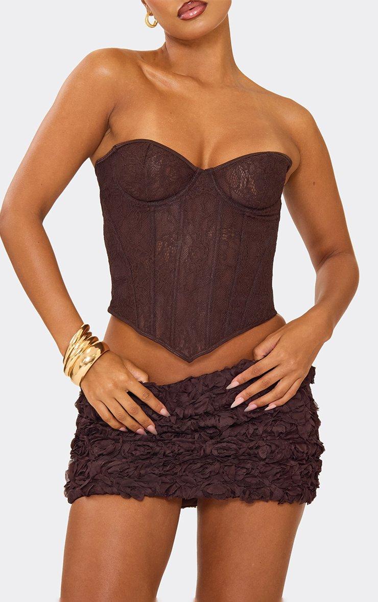 Bandeau Pointed Hem Corset Top In Chocolate Brown Lace
