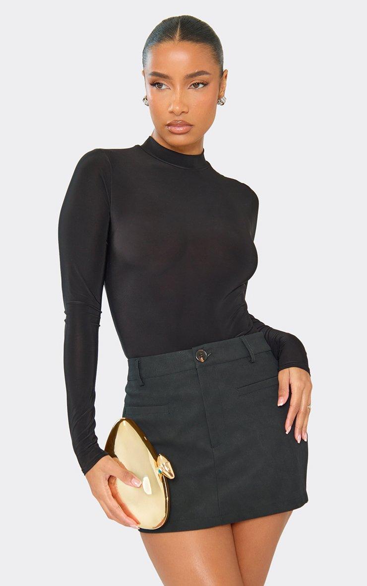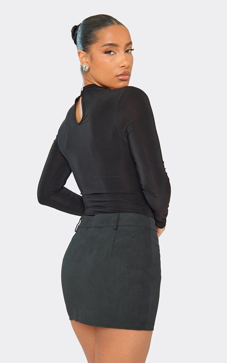 Mid Rise Ruched Front Detail Mini Skirt In Black Satin