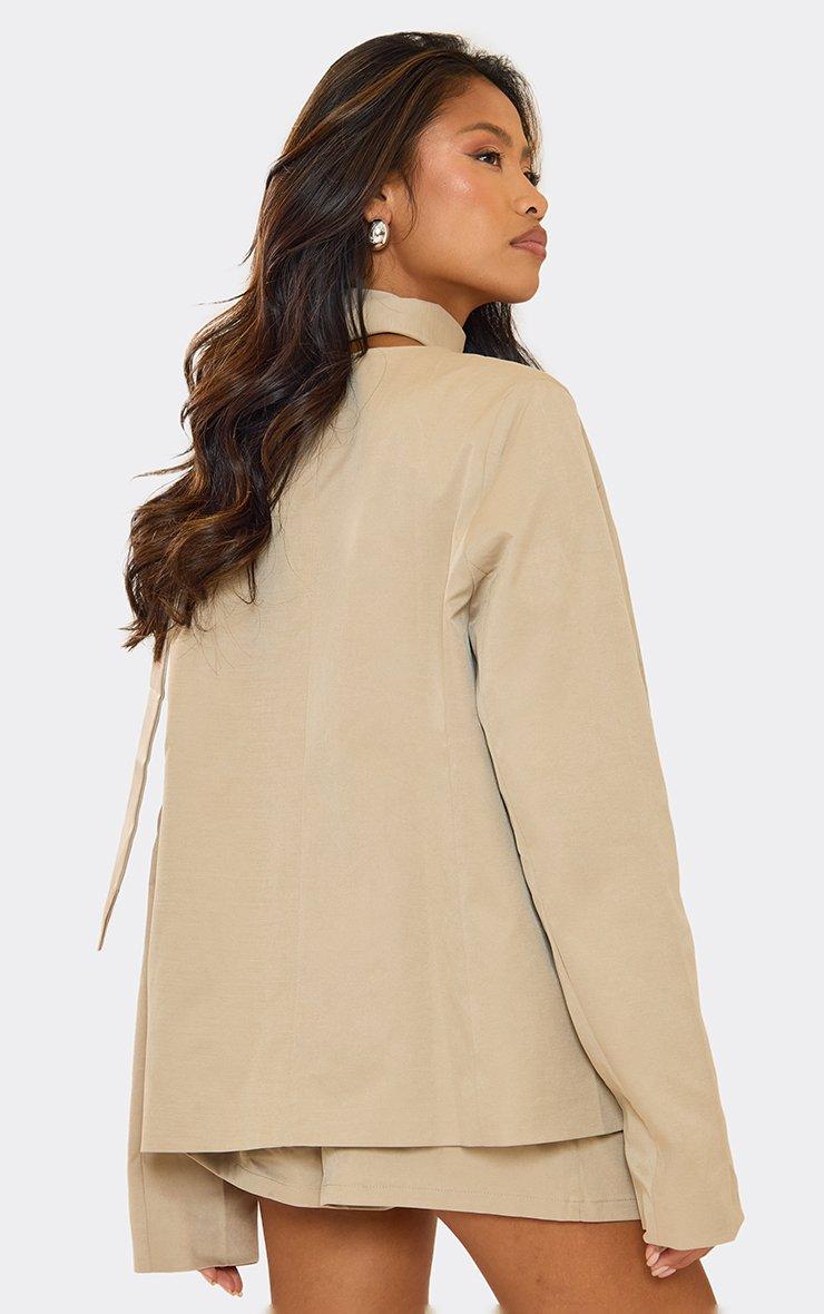 Neck Tie Detail Oversized Open Blazer In Stone