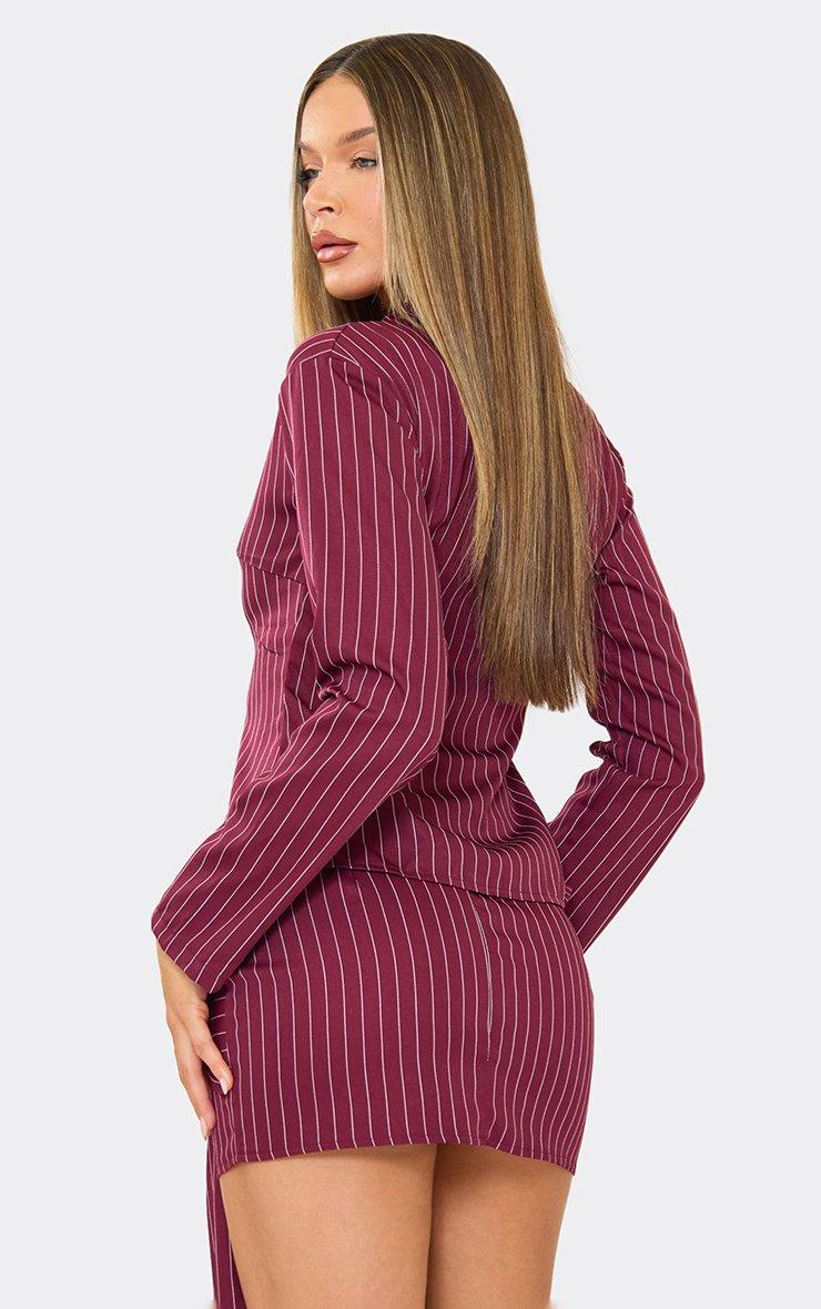 Double Zip Front Cinched Waist Wool Look Blazer In Burgundy
