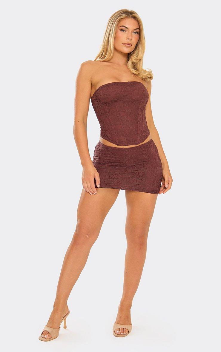 Mid Rise Tailored Mini Skort In Chocolate Brown