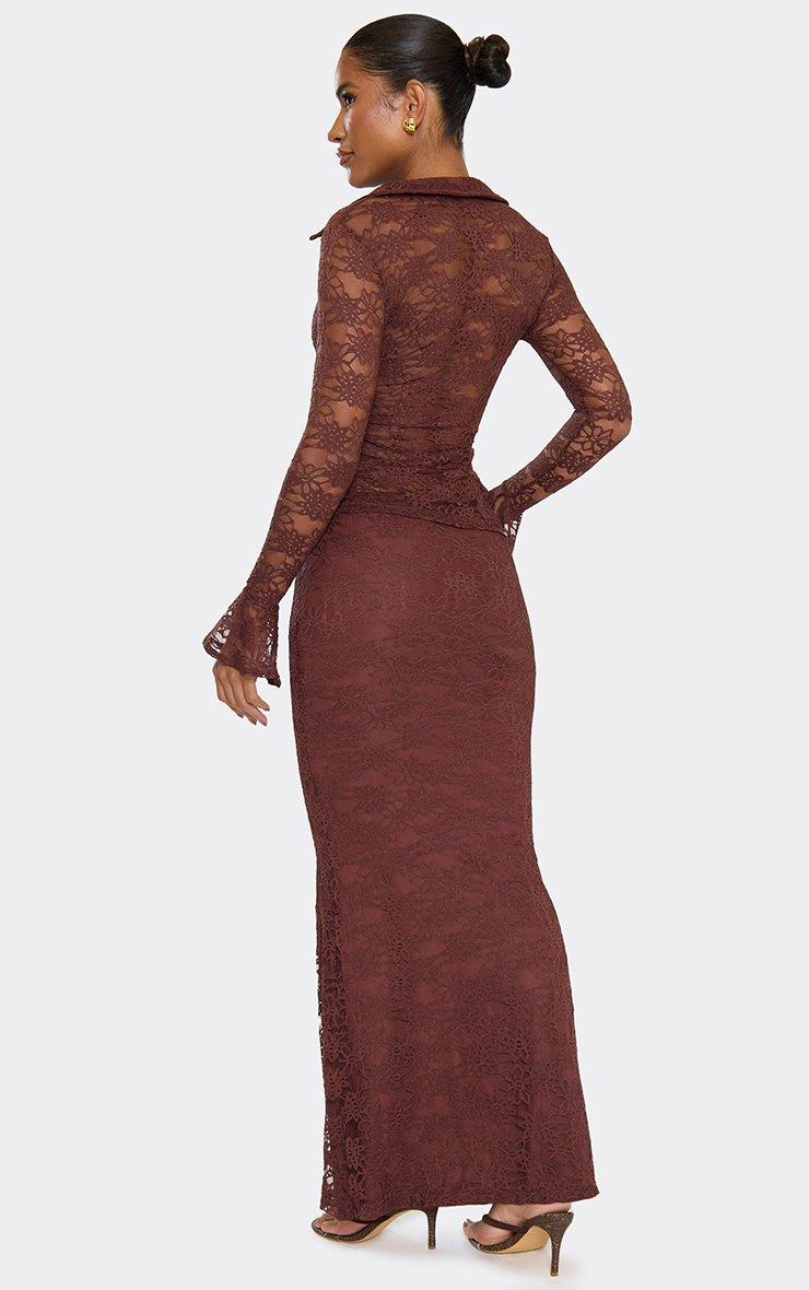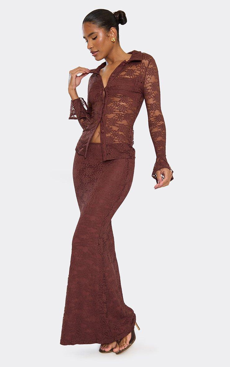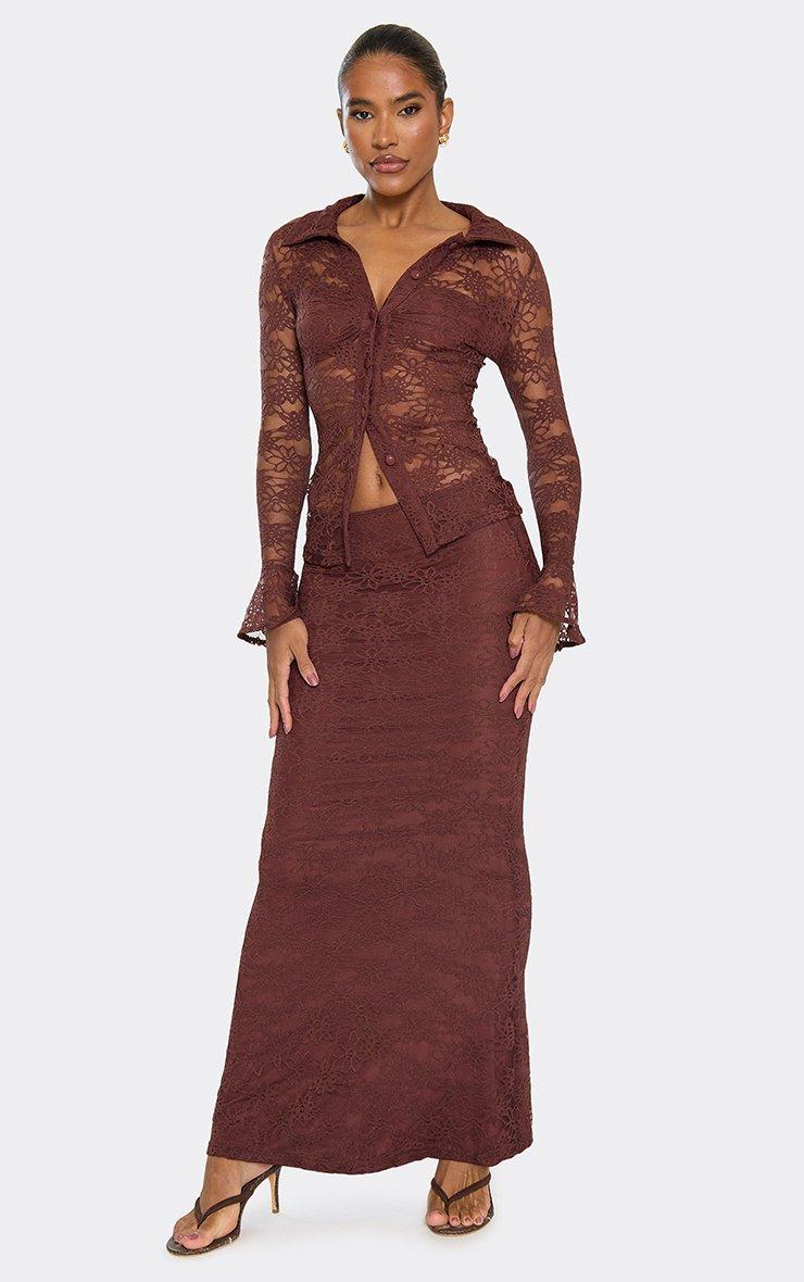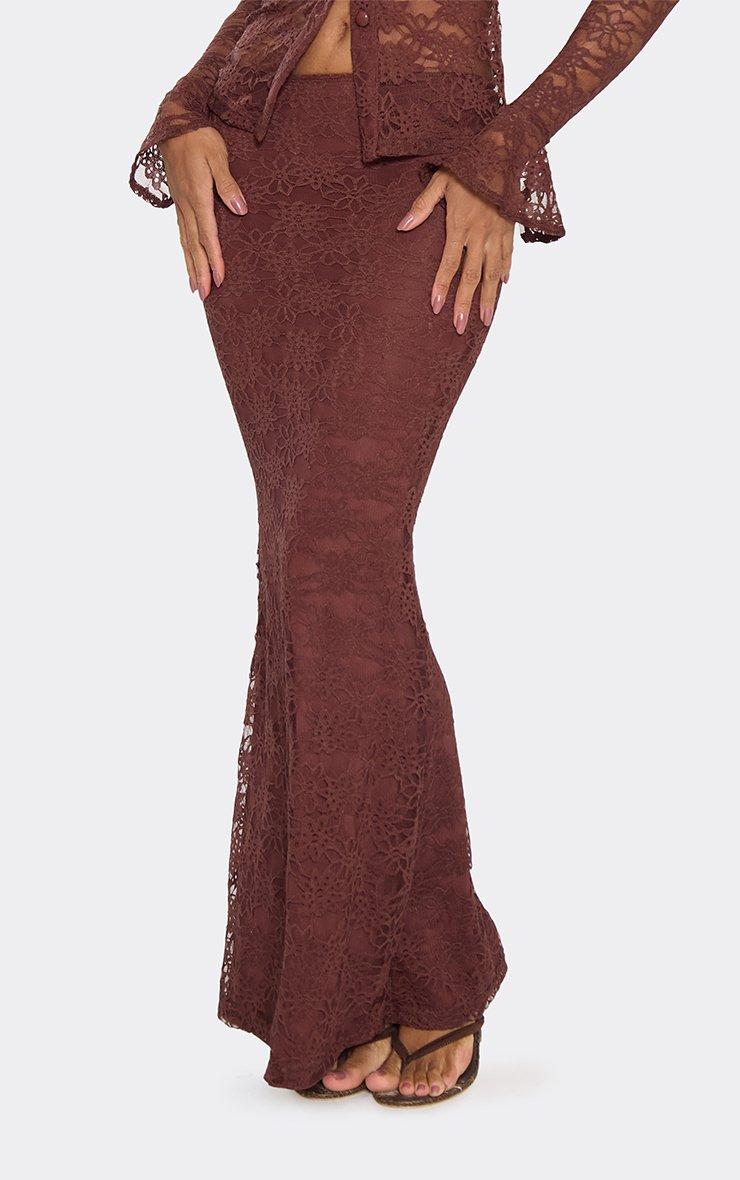 Low Waist Maxi Skirt In Chocolate Brown Lace