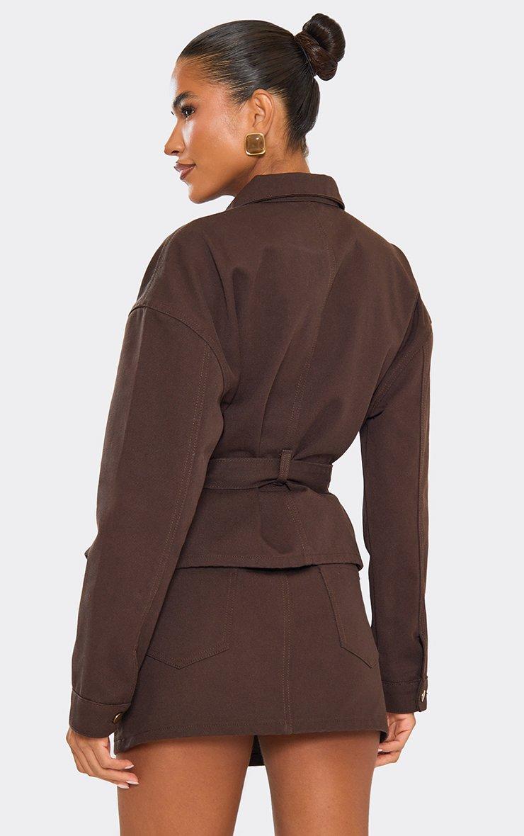 Tie Cinched Waist Zip Down Jacket In Chocolate Brown Denim