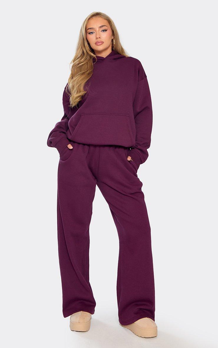 Mid Rise Wide Leg Joggers In Plum