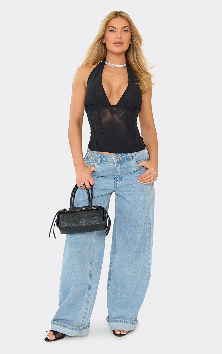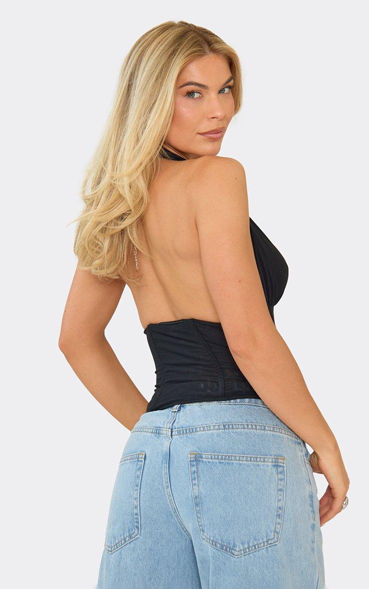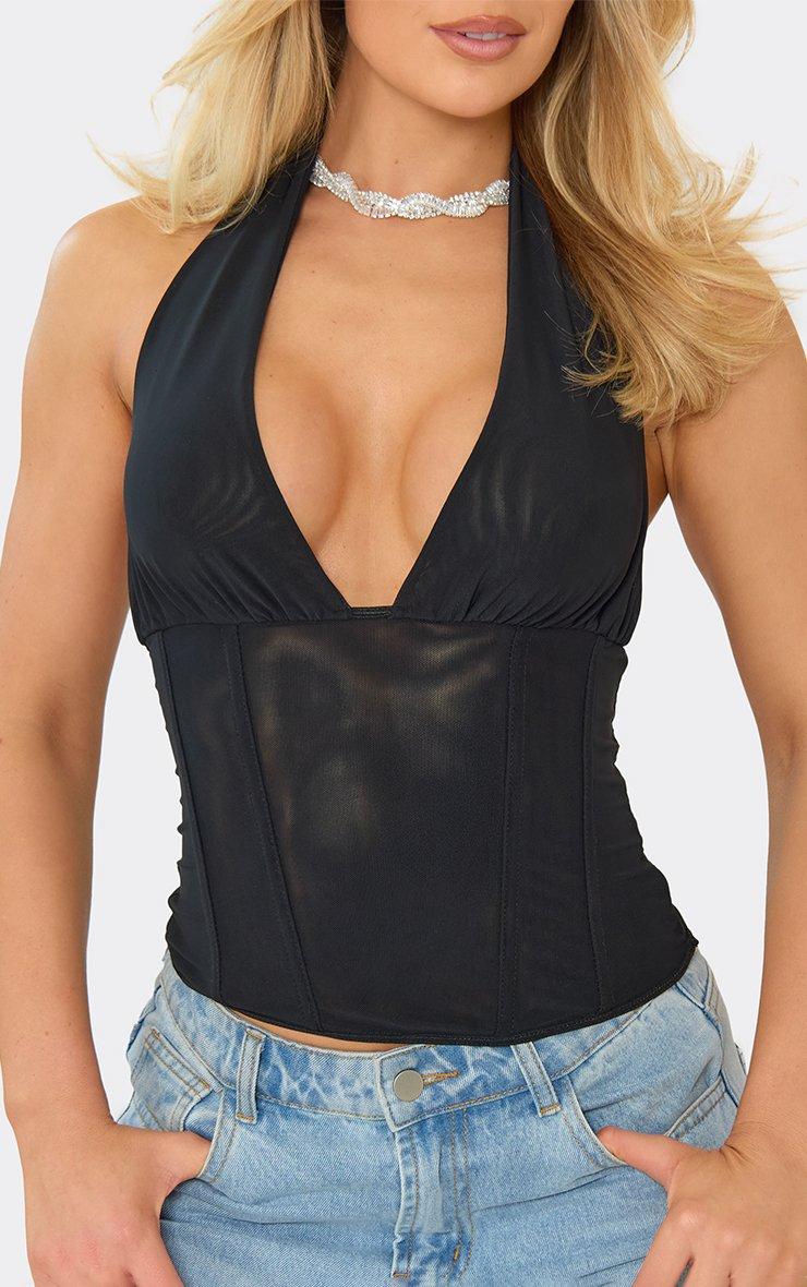 Halterneck Plunge Corset Top In Black