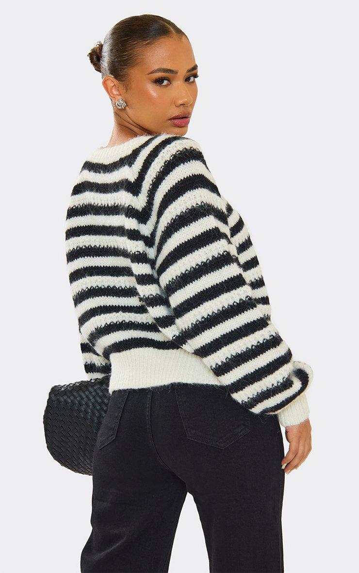 Long Sleeve Contrast Trim Detail Top In Black And White Stripe Knit