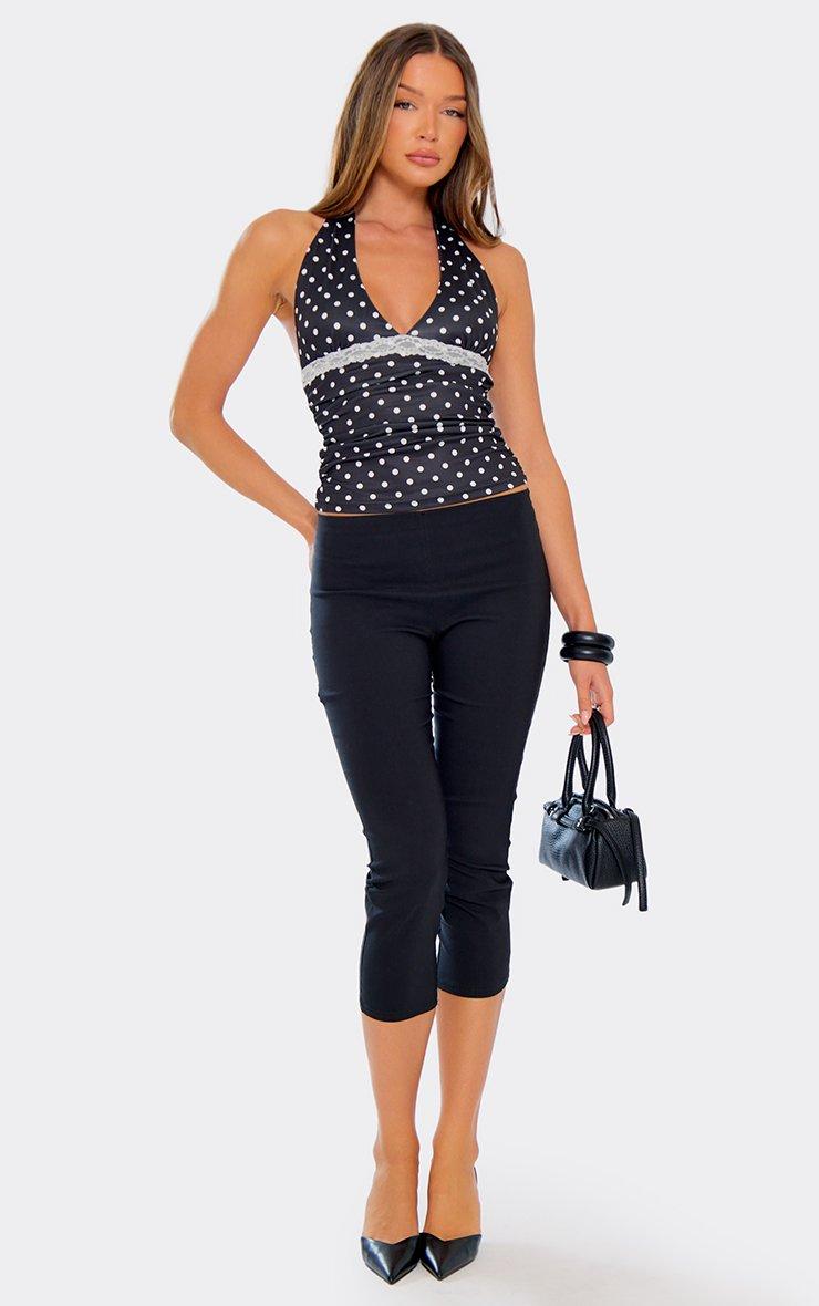 Bandeau Structured Tie Back Detail Corset Top In Black Lace