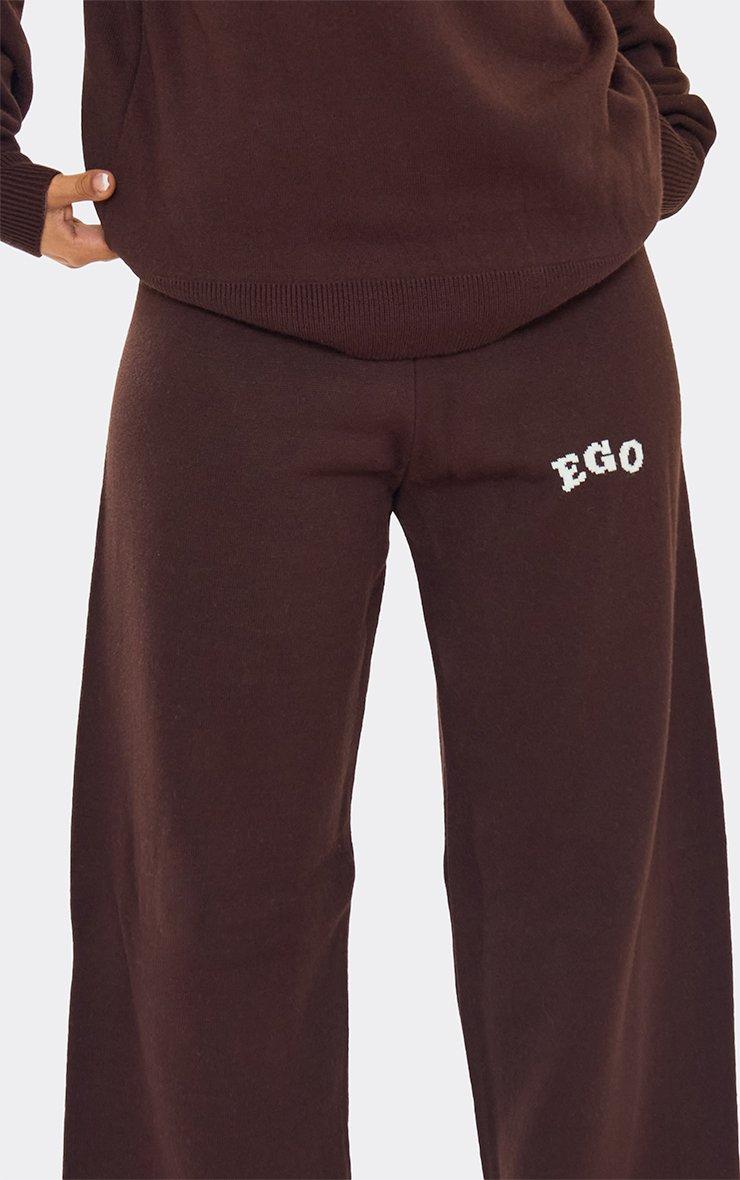 Mid Rise Ego Logo Wide Leg Trousers In Chocolate Brown Knit