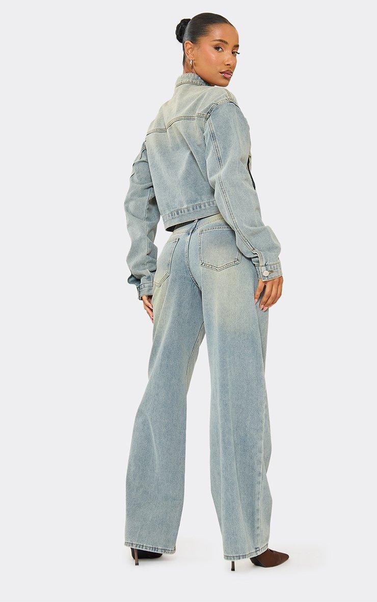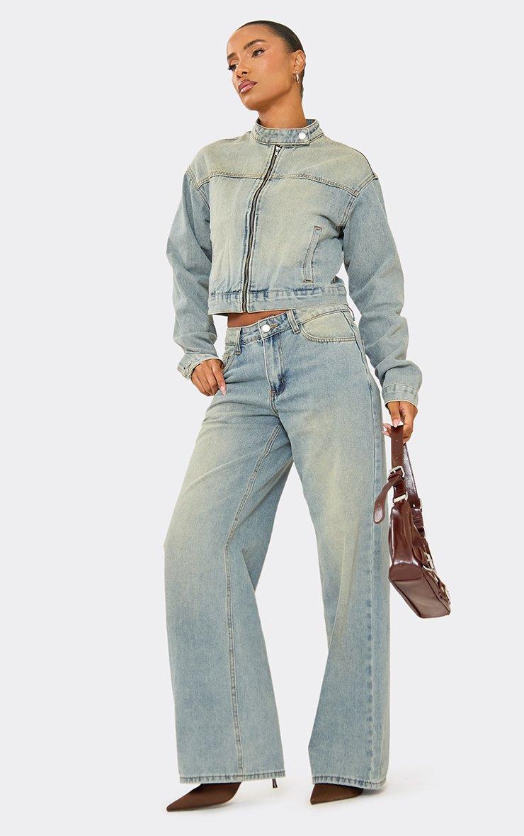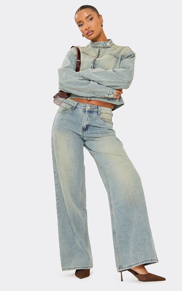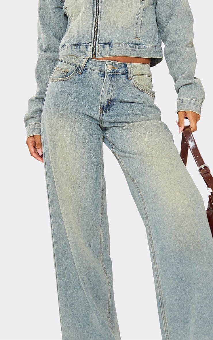 Low Rise Wide Leg Jeans In Vintage Blue Wash Denim