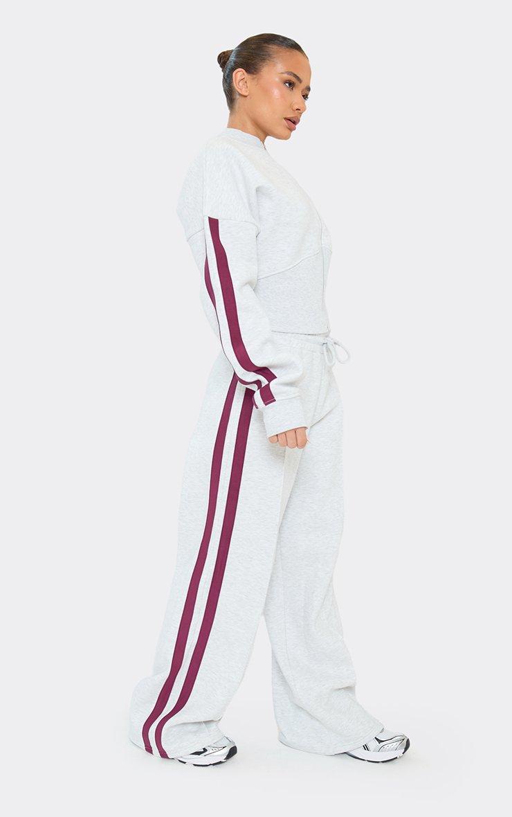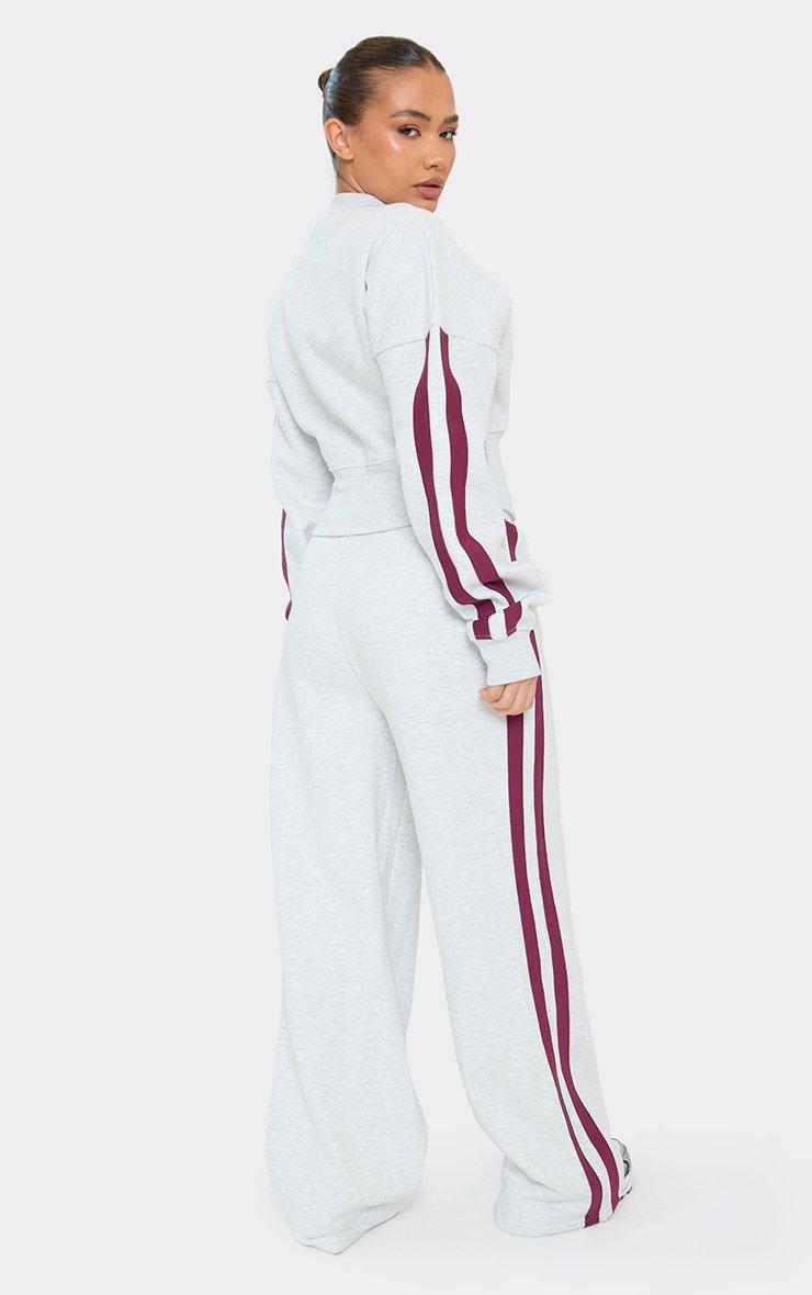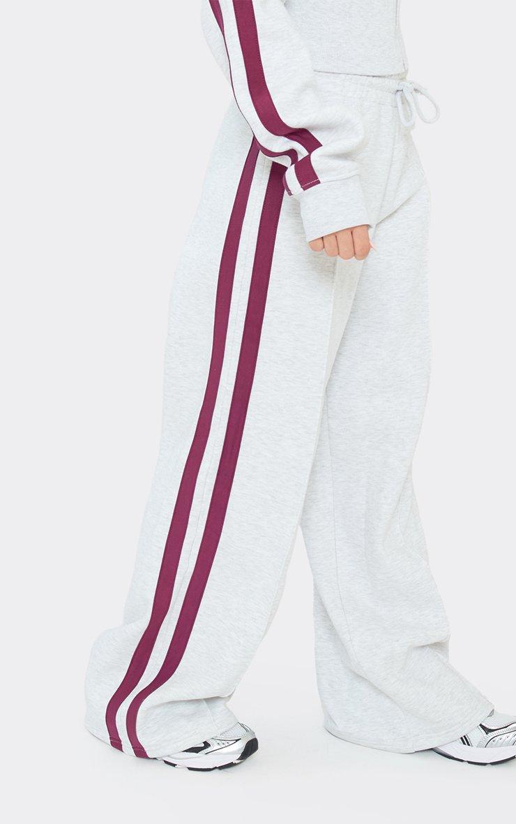 mid rise drawstring waist contrast panel detail wide leg joggers in light grey marl