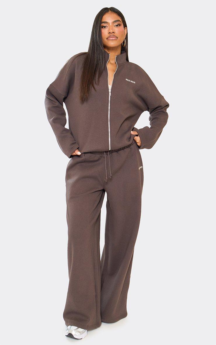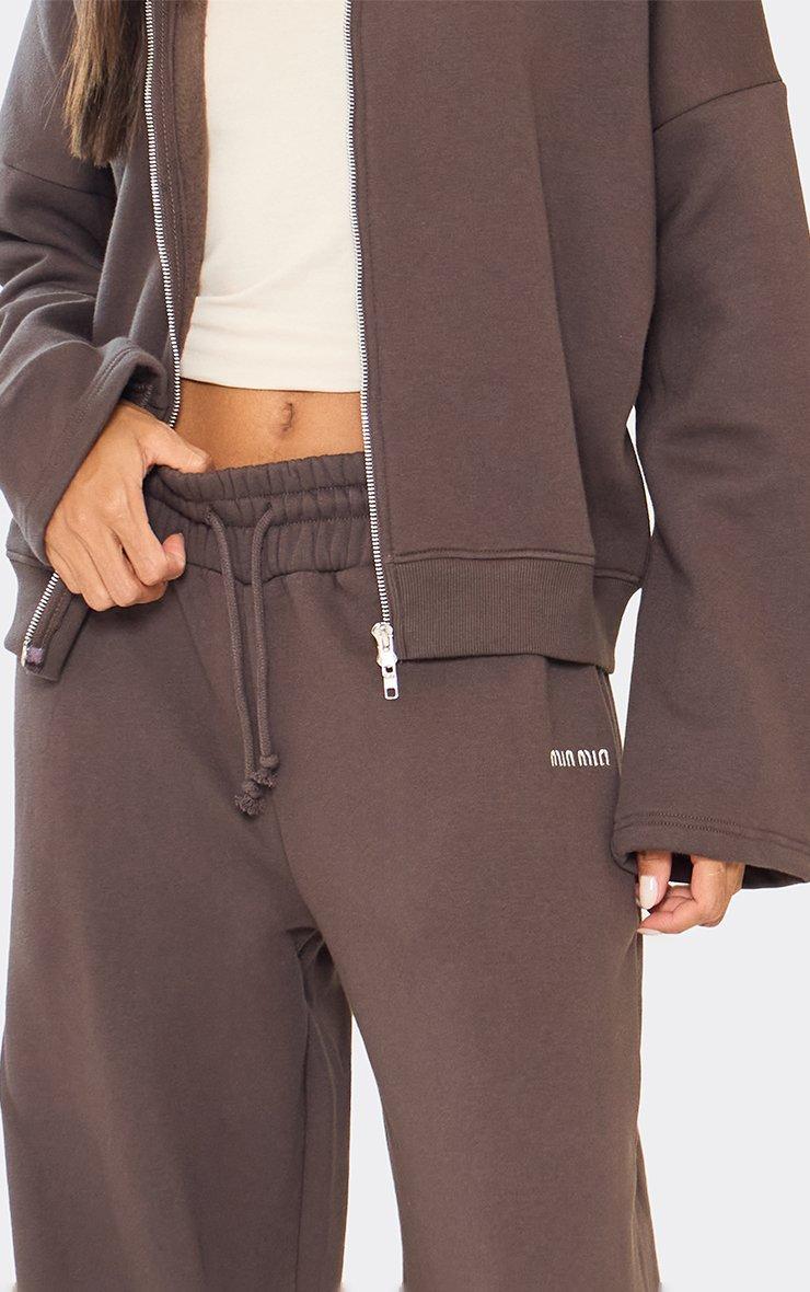 Drawstring Waist Min Min Embroidered Detail Wide Leg Joggers In Chocolate Brown