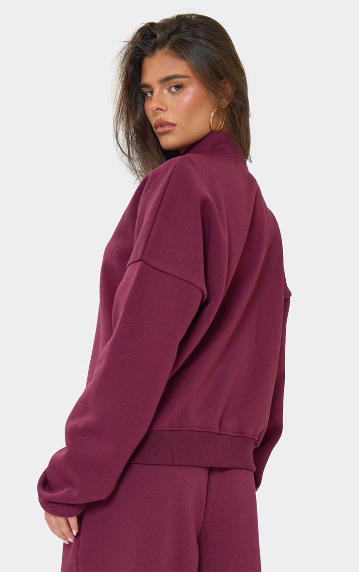 long sleeve min min embroidered graphic detail zip up jacket in plum