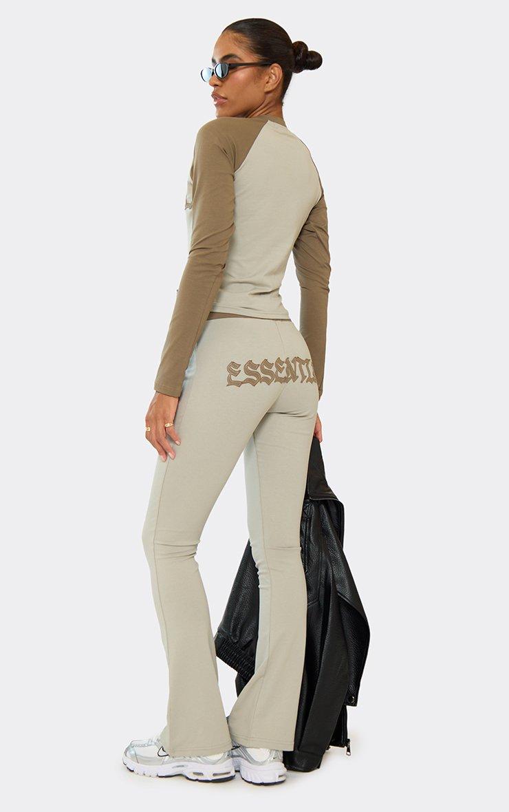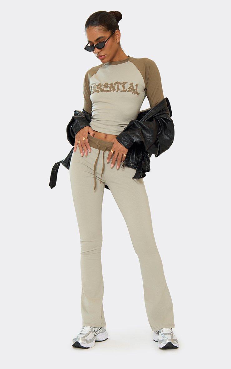 low rise distressed graphic detail flared leg trousers in khaki green