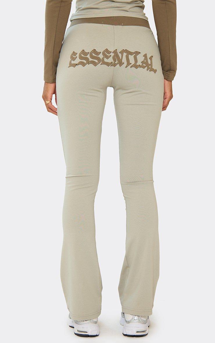 Low Rise Slinky Fold Over Waistband Flared Trousers In Khaki Green Lace