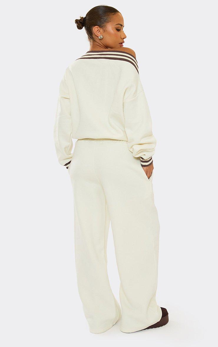 High Waist Contrast Stripe Wide Leg Joggers In Cream