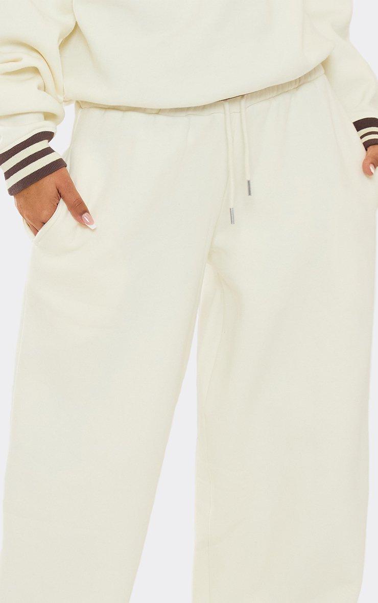 Mid Rise Contrast Piping Detail Wide Leg Joggers In Cream