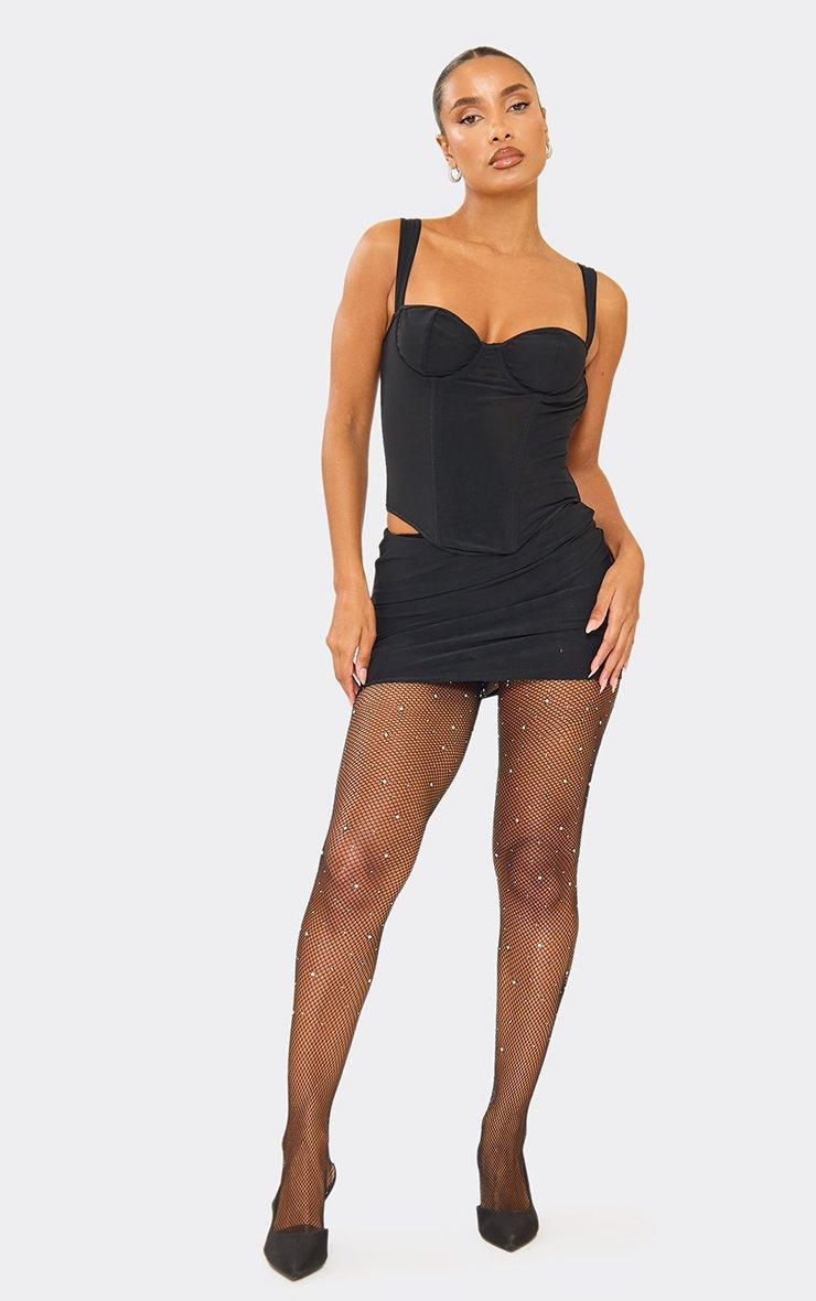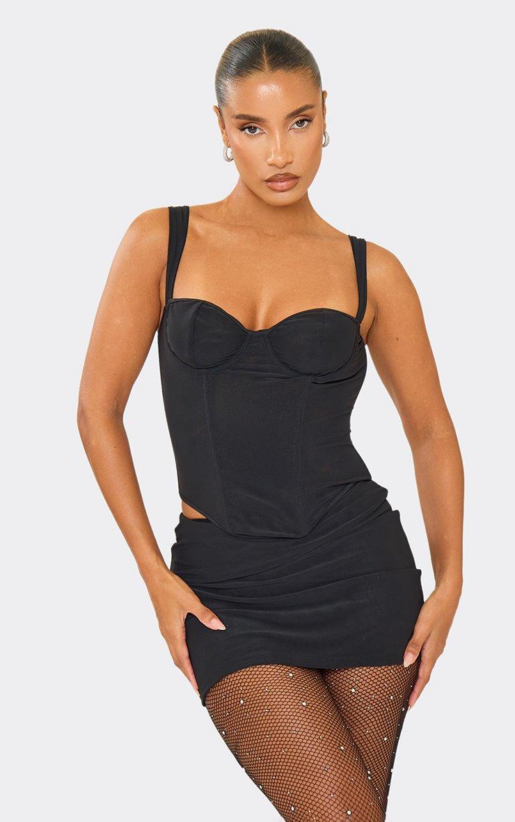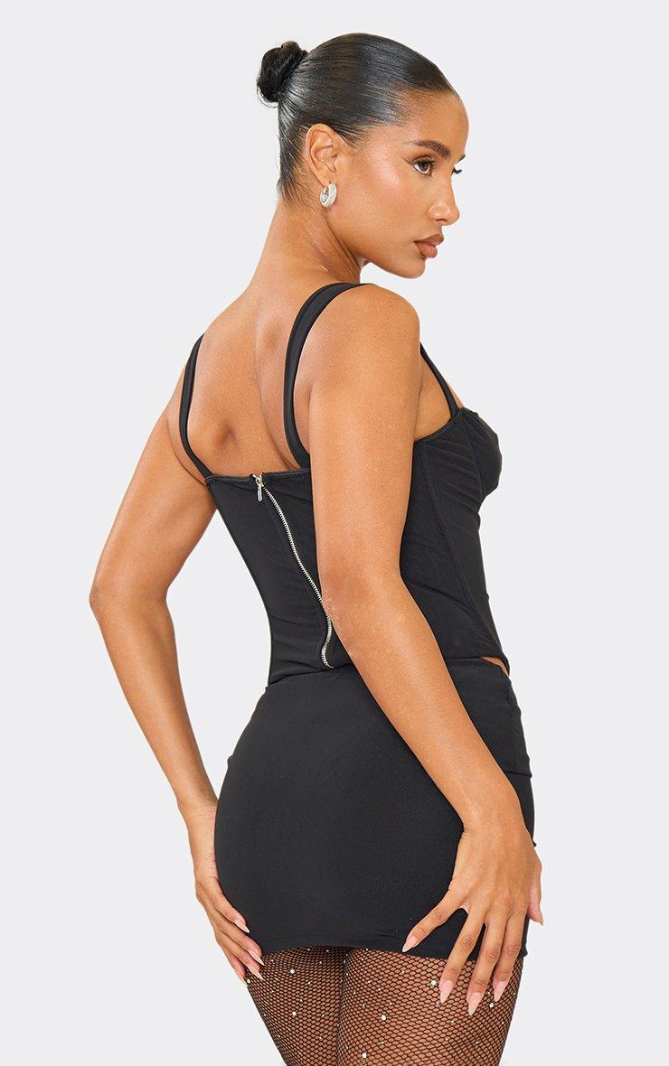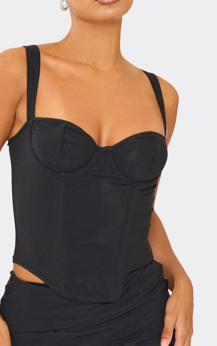 Strappy Zip Back Detail Corset Top In Black Mesh
