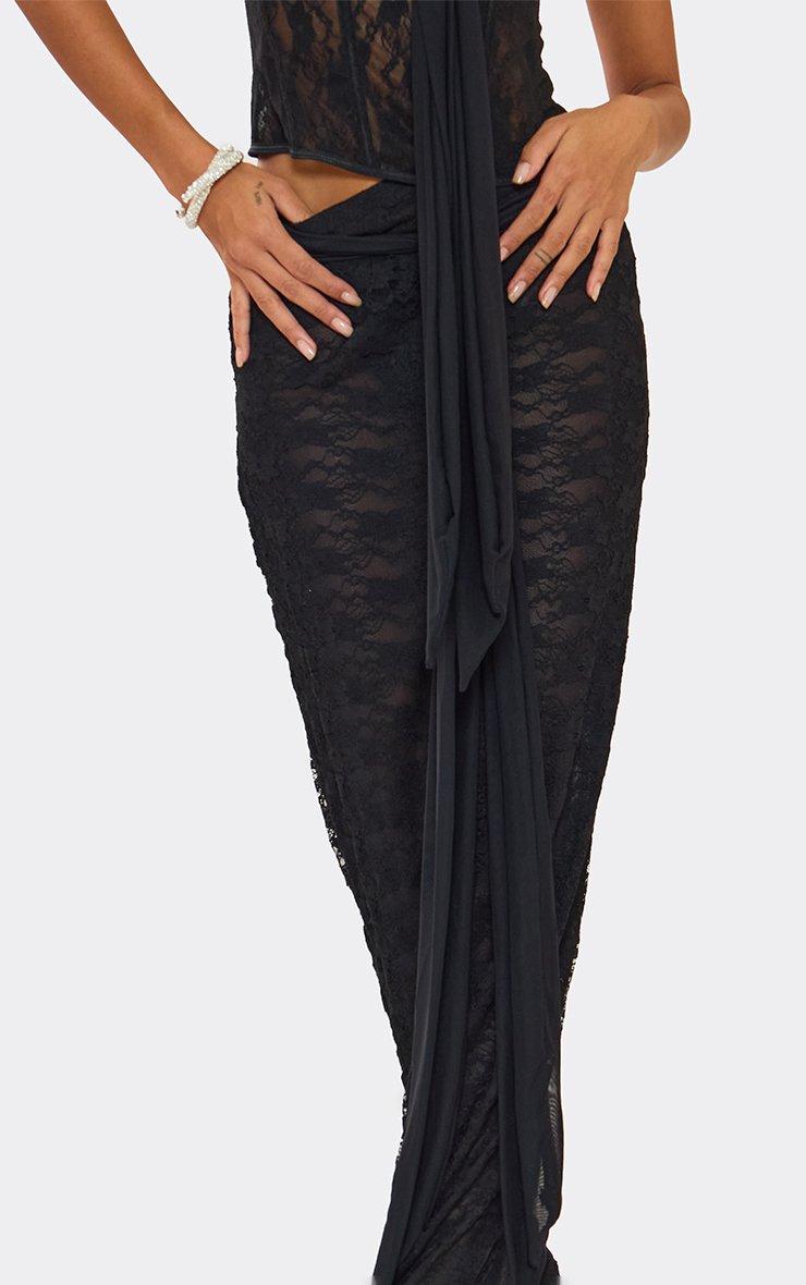 Mid Rise Eyelet Detail Graphic Wide Leg Joggers In Black