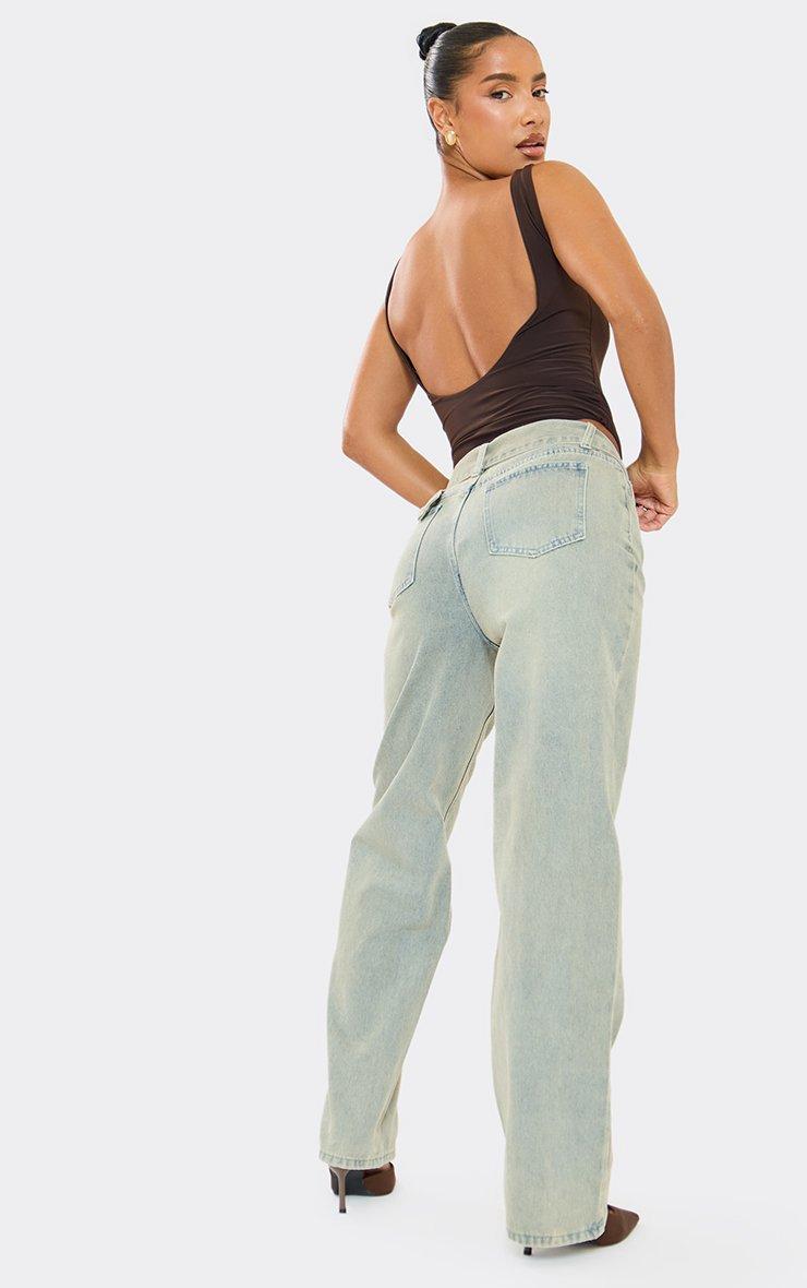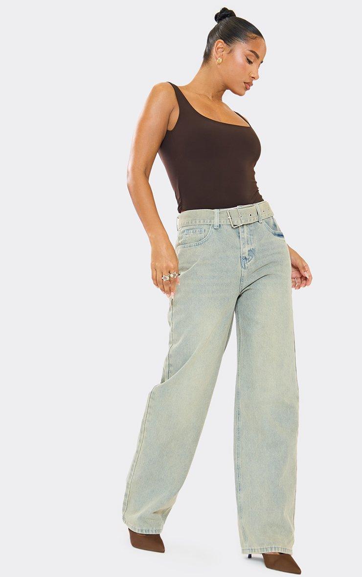 Belted Straight Leg Jeans In Light Vintage Wash Denim