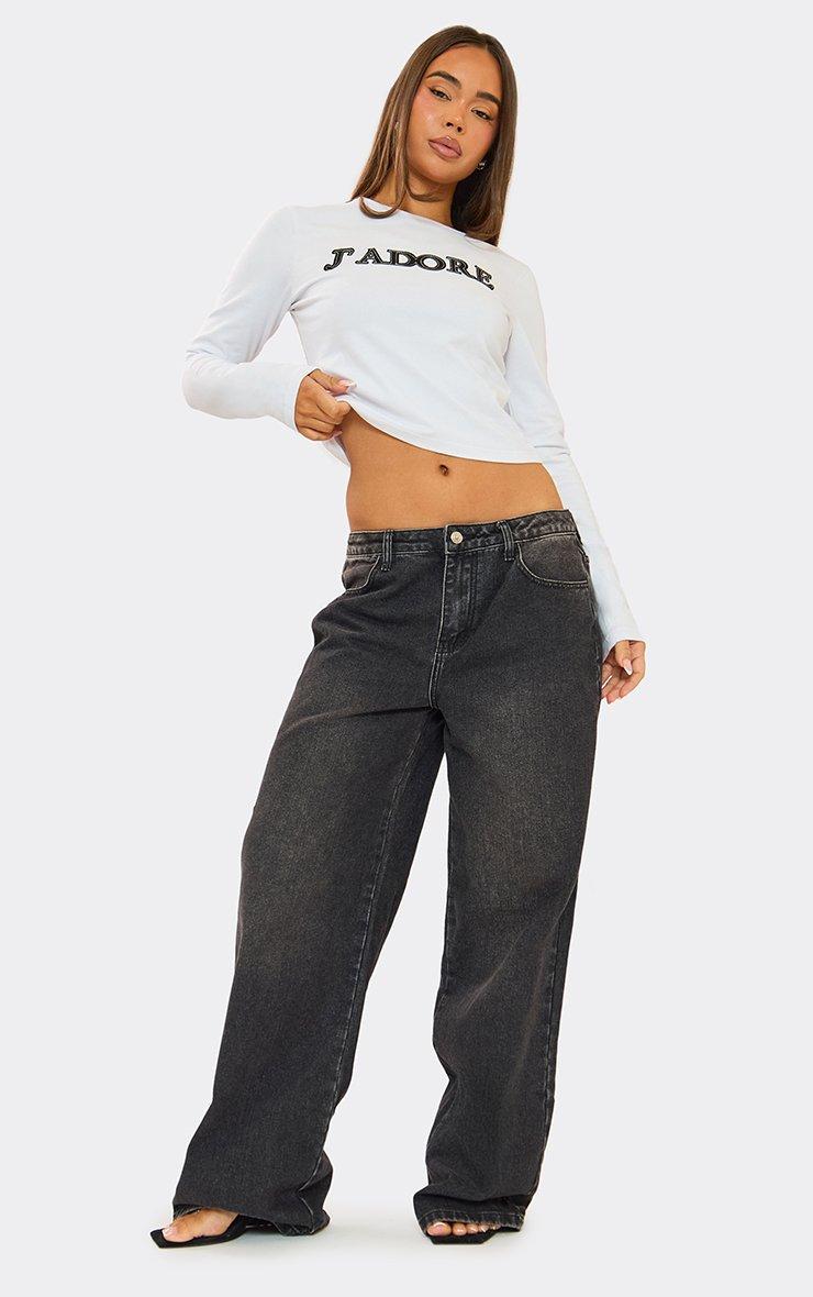 Long Sleeve Contrast Slogan Print Tank Top In White