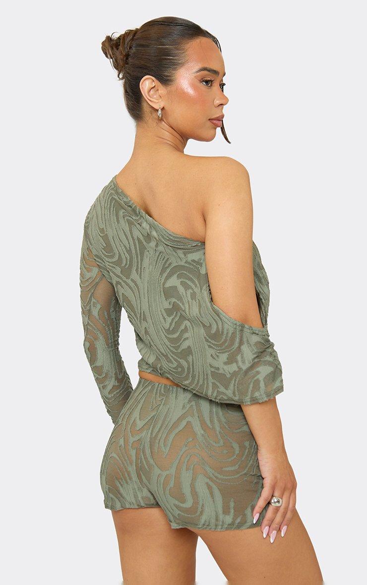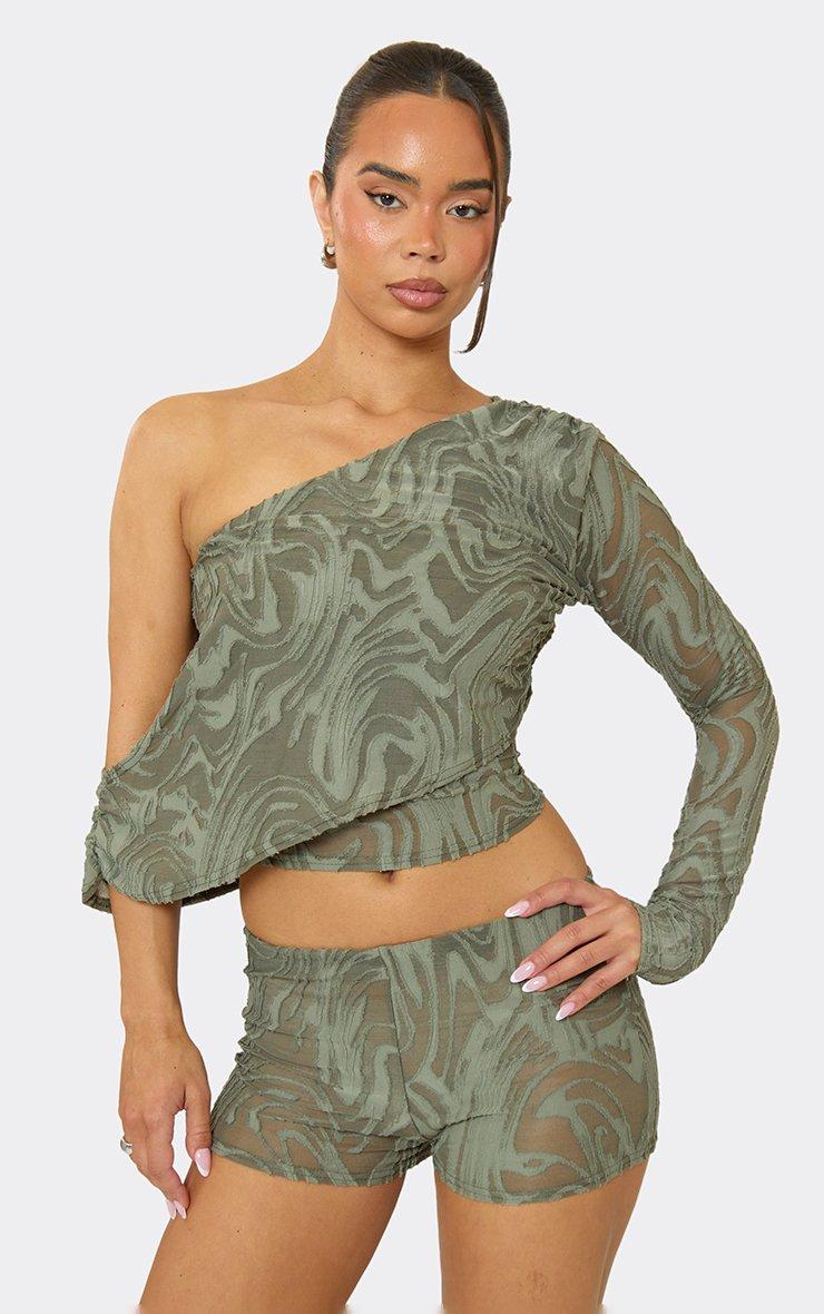 Low Waist Ruched Detail Hot Pants In Green Texture