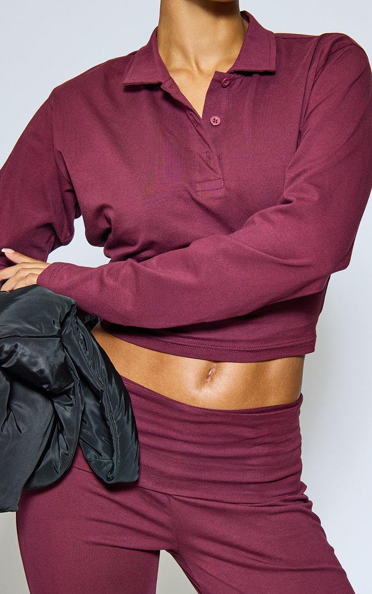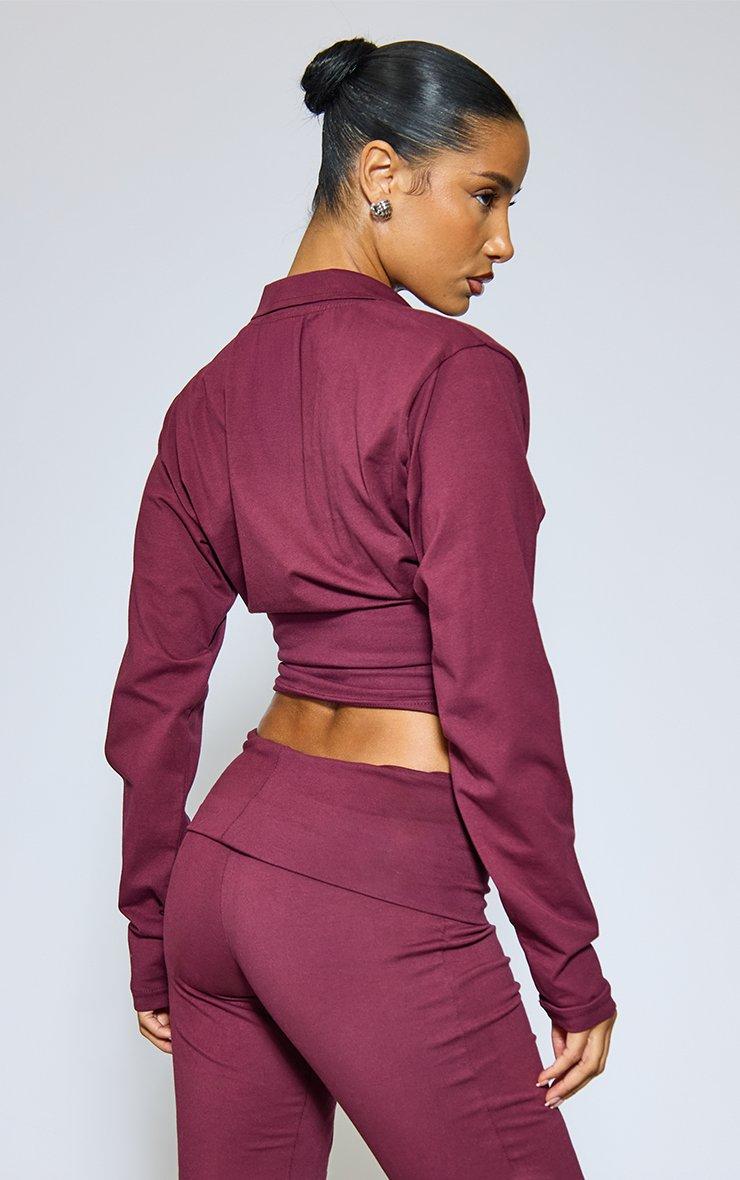 Long Sleeve Seam Detail Cinched Waist Sweatshirt In Plum