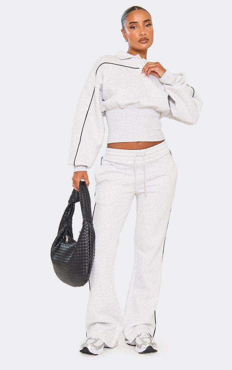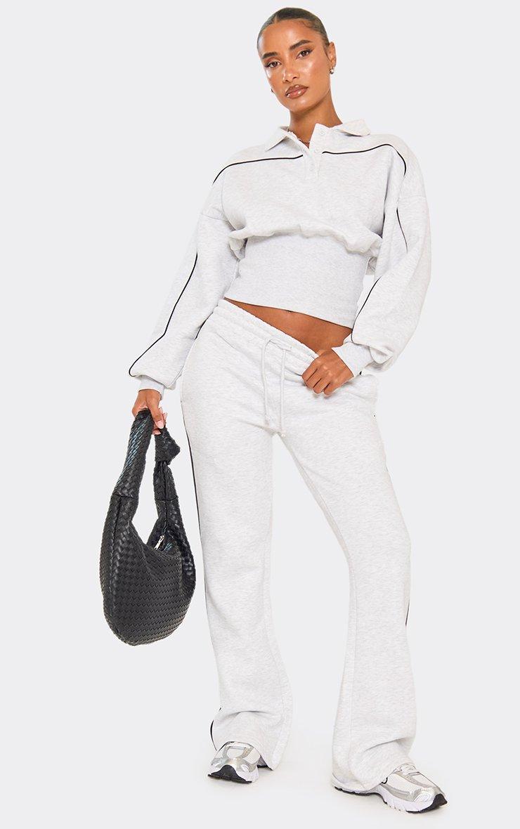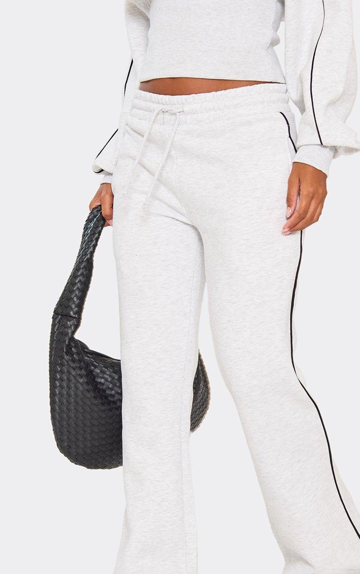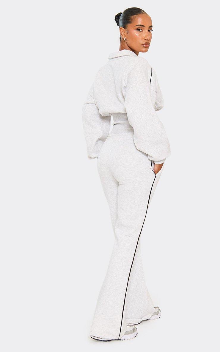mid rise contrast piping detail wide leg joggers in light grey marl
