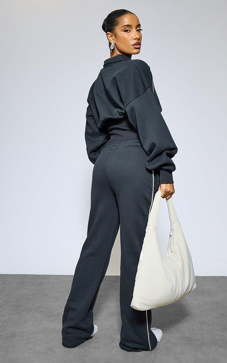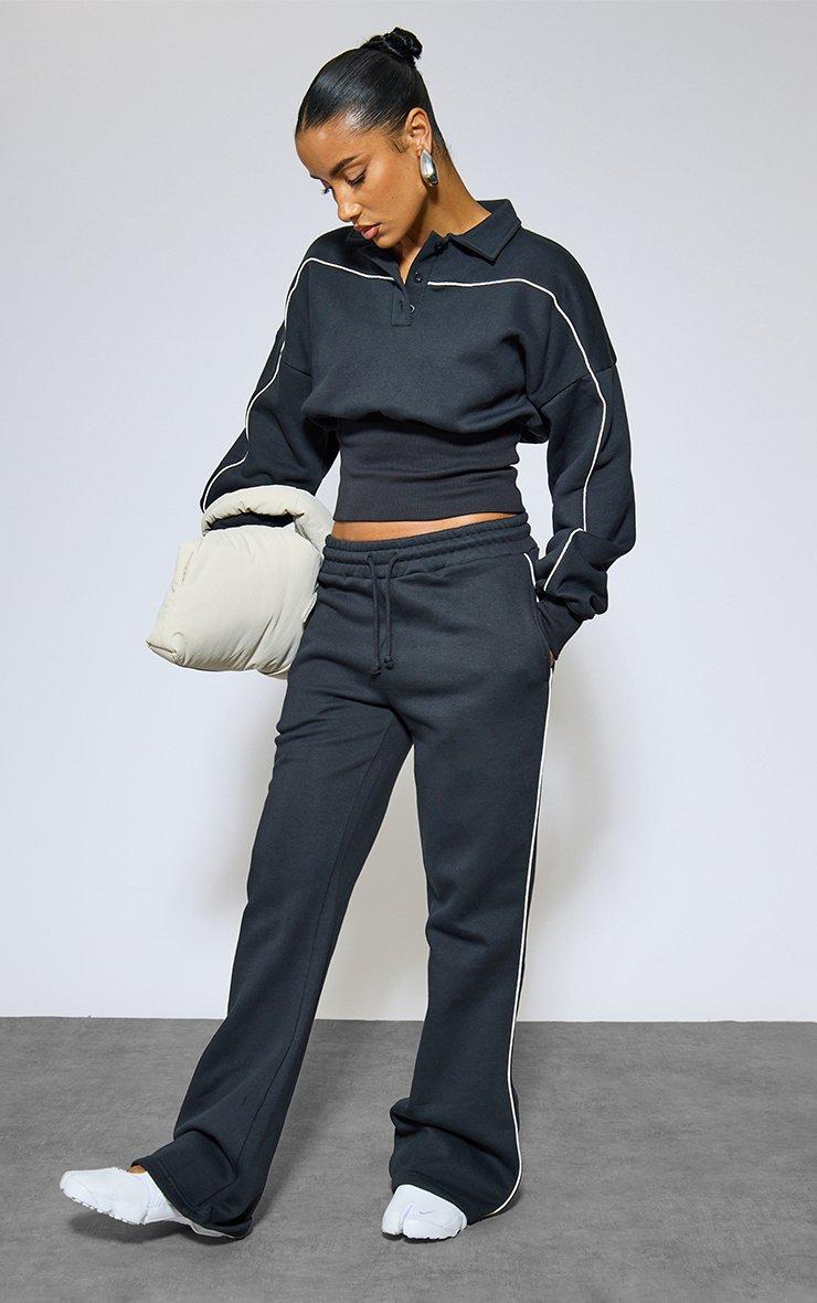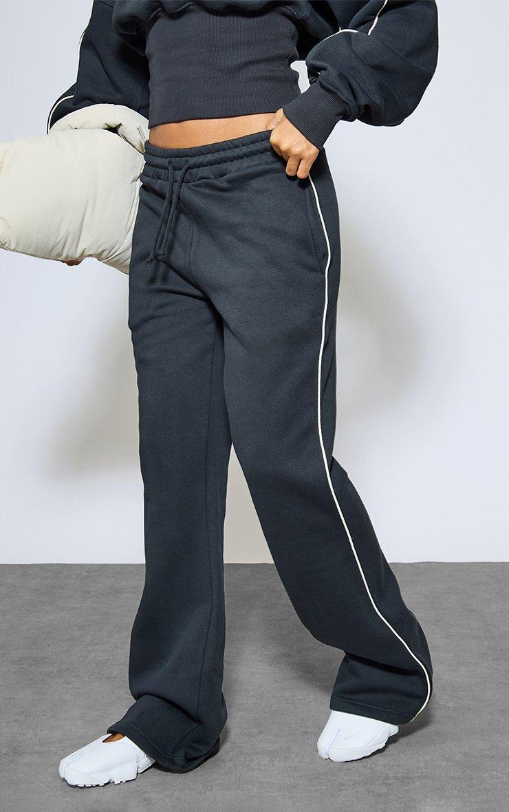 Mid Rise Contrast Piping Detail Wide Leg Joggers In Navy