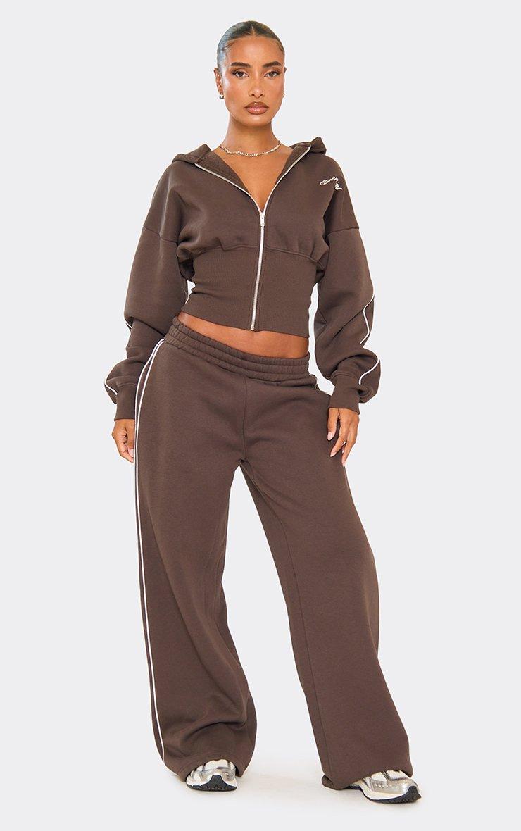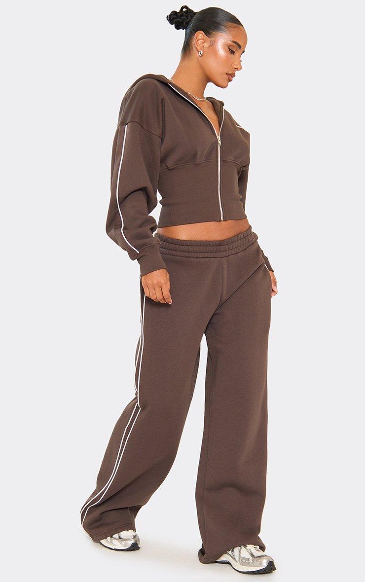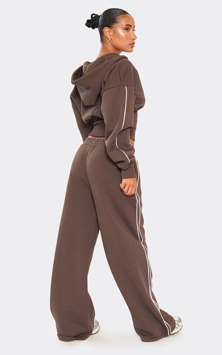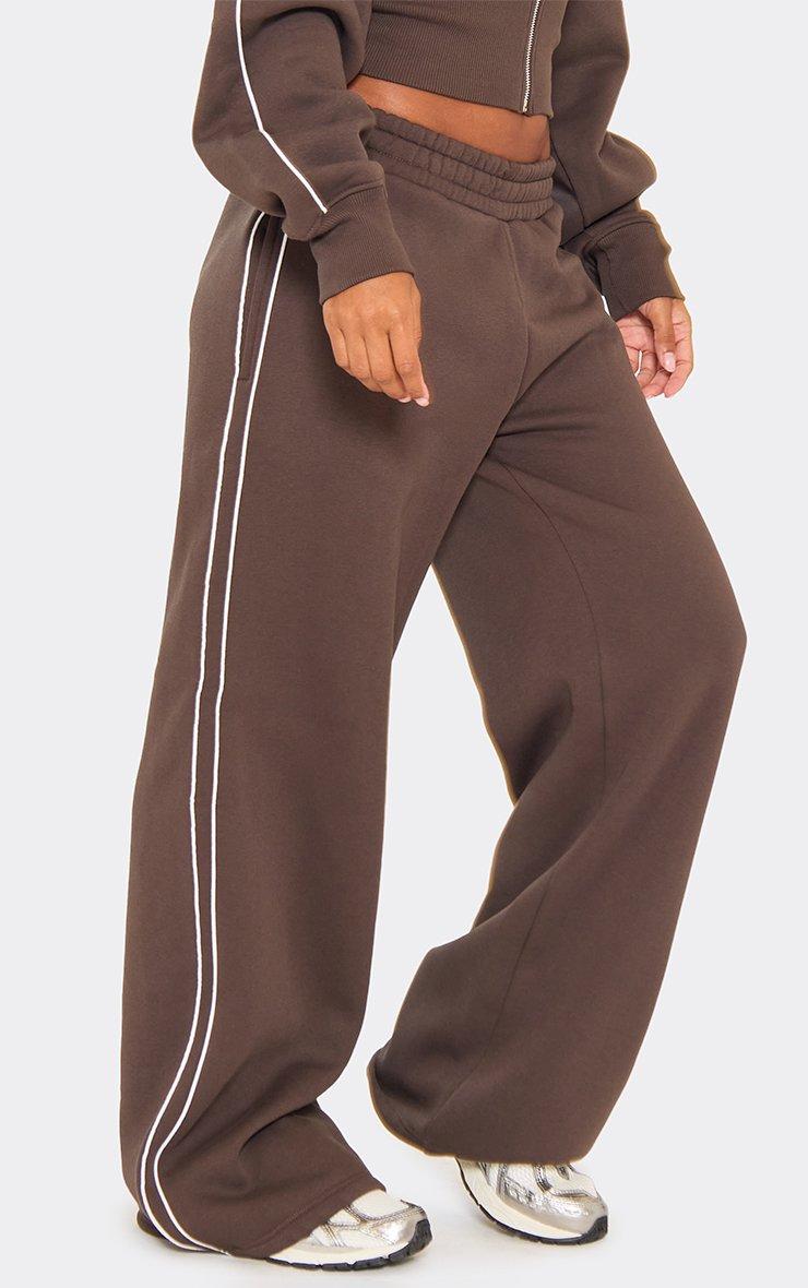 Mid Rise Contrast Stripe Detail Wide Leg Joggers In Chocolate Brown