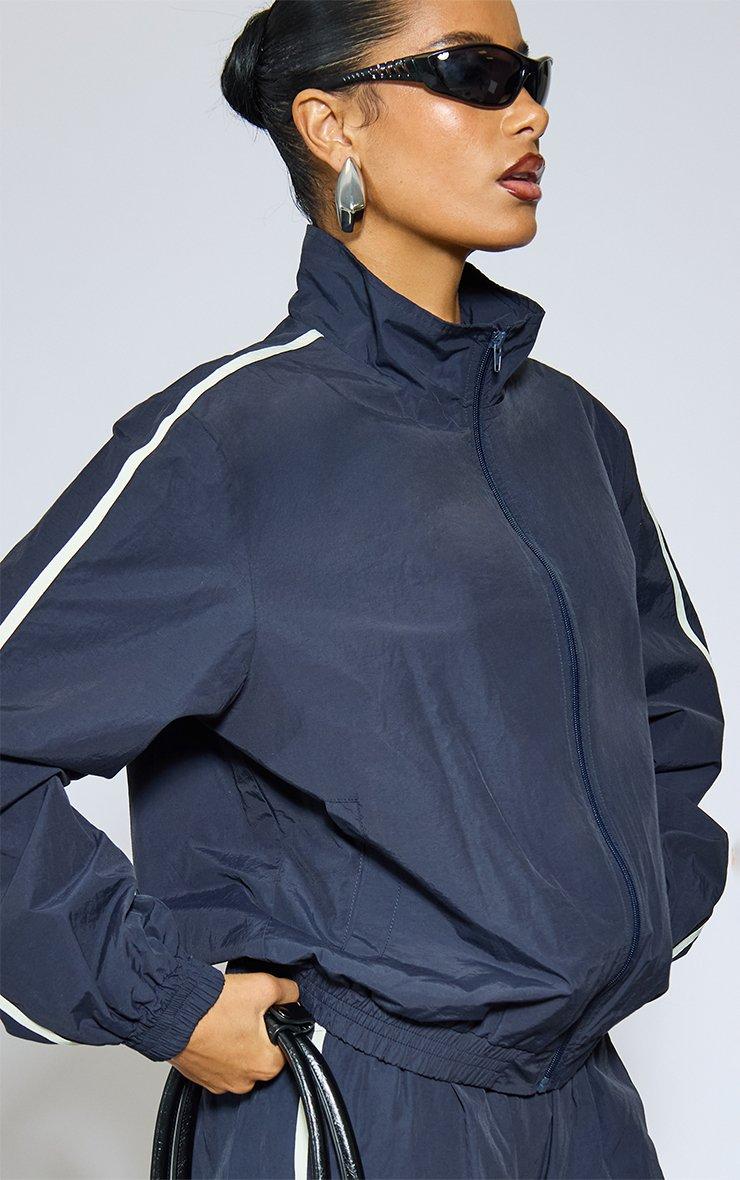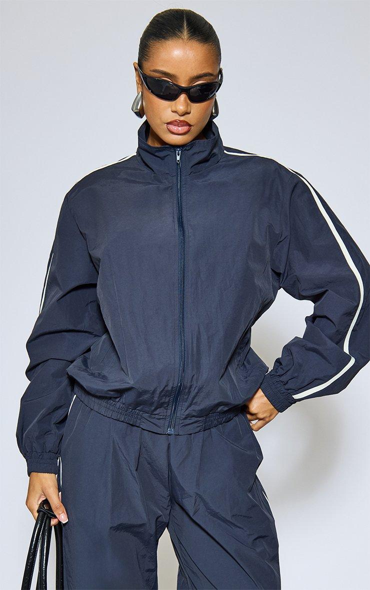 Long Sleeve Contrast Side Panel Zip Up Track Jacket In Navy Shell